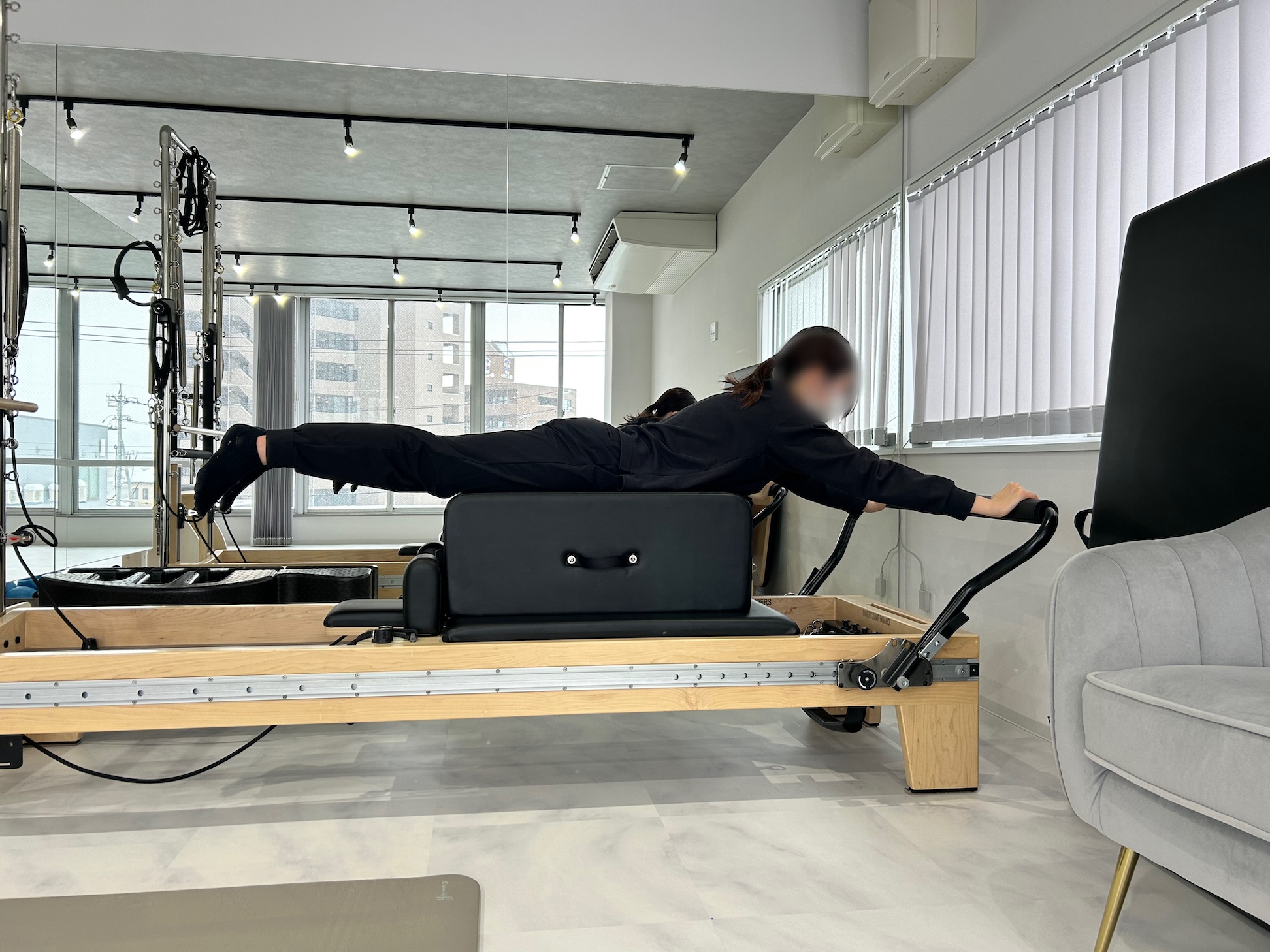 初期段階では、反り腰や腰痛をできるだけ早く良い状態にするため、腹筋群・股関節周囲筋の機能を向上させるエクササイズを行主体にレッスンを行なっていきました。