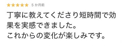 レッスンと合わせて自主ケアも積極的に行なって頂けていたため、1〜2ヶ月で効果を実感を実感できています。