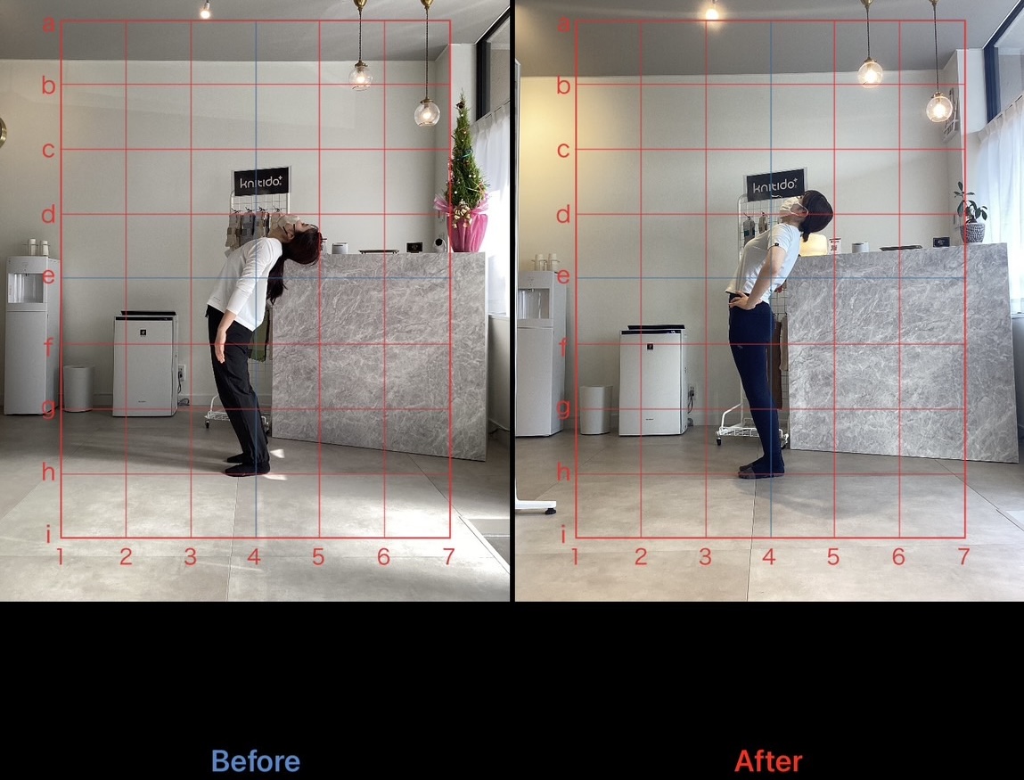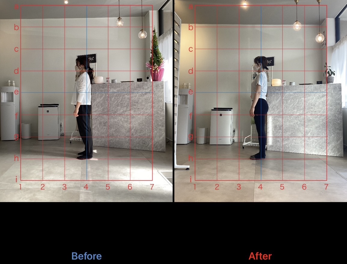 お客様として通ってくれている際には「ピラティスすごいです!めちゃくちゃ変わります」と言っていただきました。そして、本当に良いものを多くの方に提供したいとのことで、当店のスタッフの一員となって今では人気のインストラクターになってくれるほど頼れる存在になっています。そして写真を比べると一目瞭然の変化です。ピラティスを取り入れたレッスンは自信をもって将来の投資といえますので、気になる方はぜひ一度受けてみて下さい。