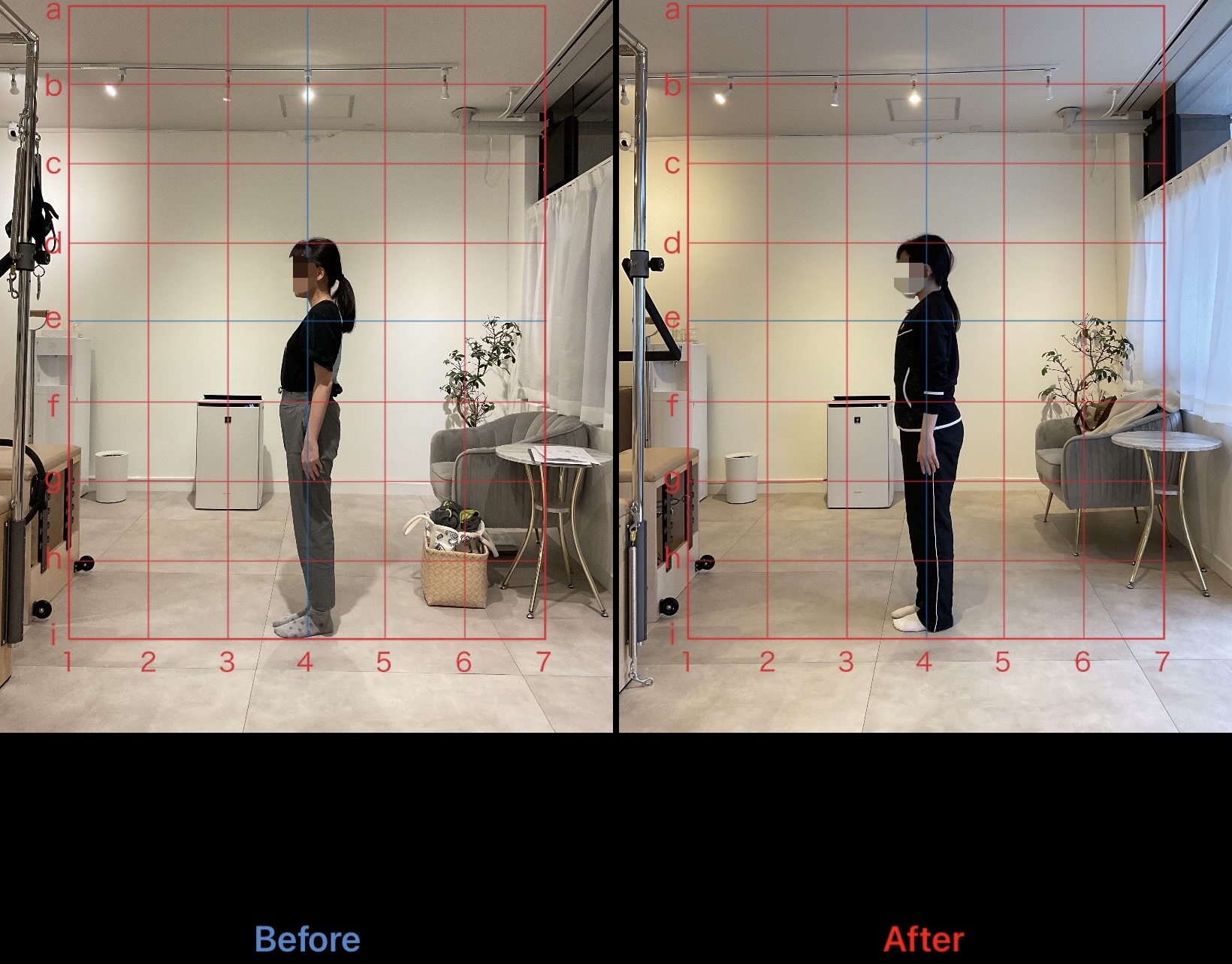 上記はレッスン開始と4ヶ月後の比較写真となります。