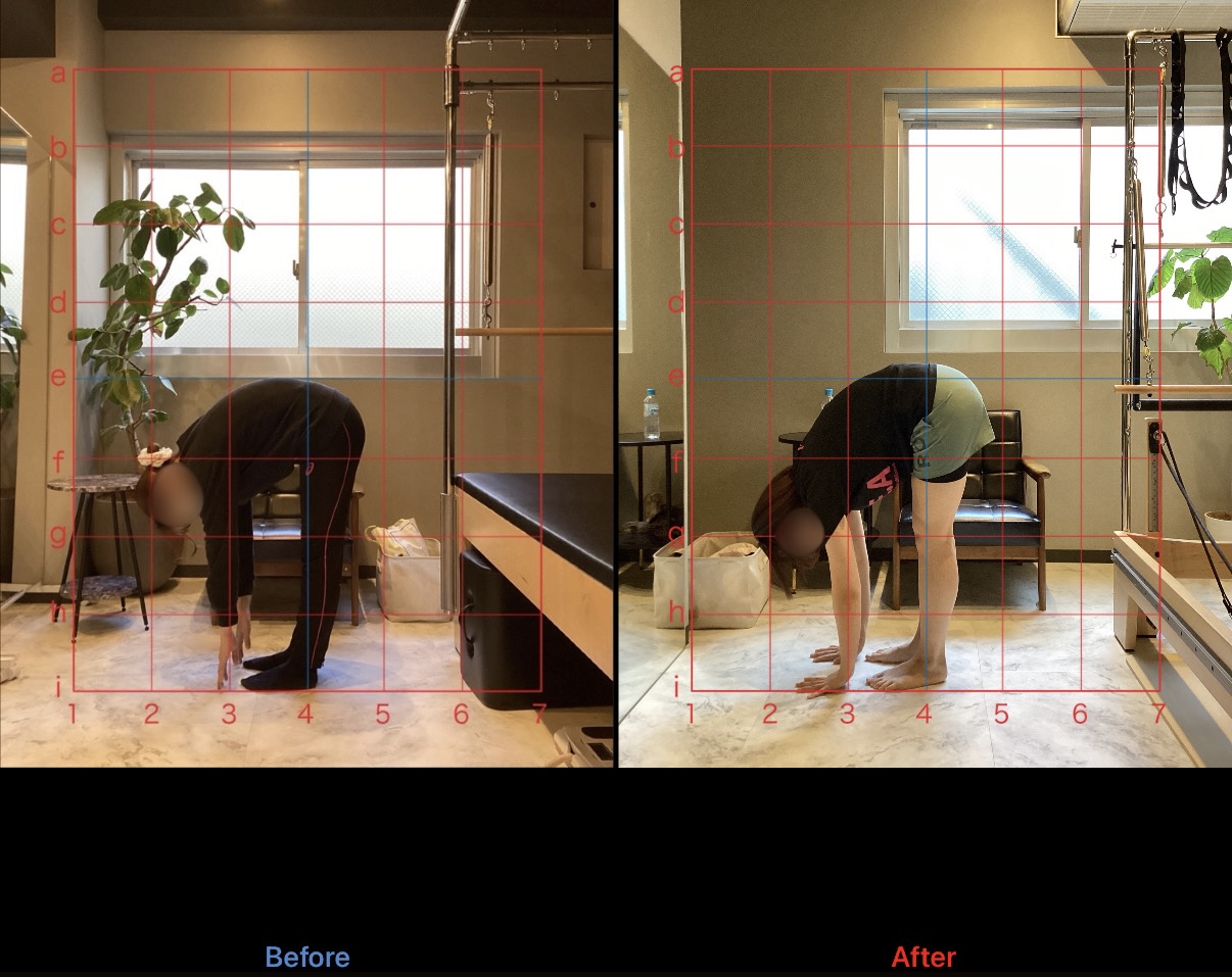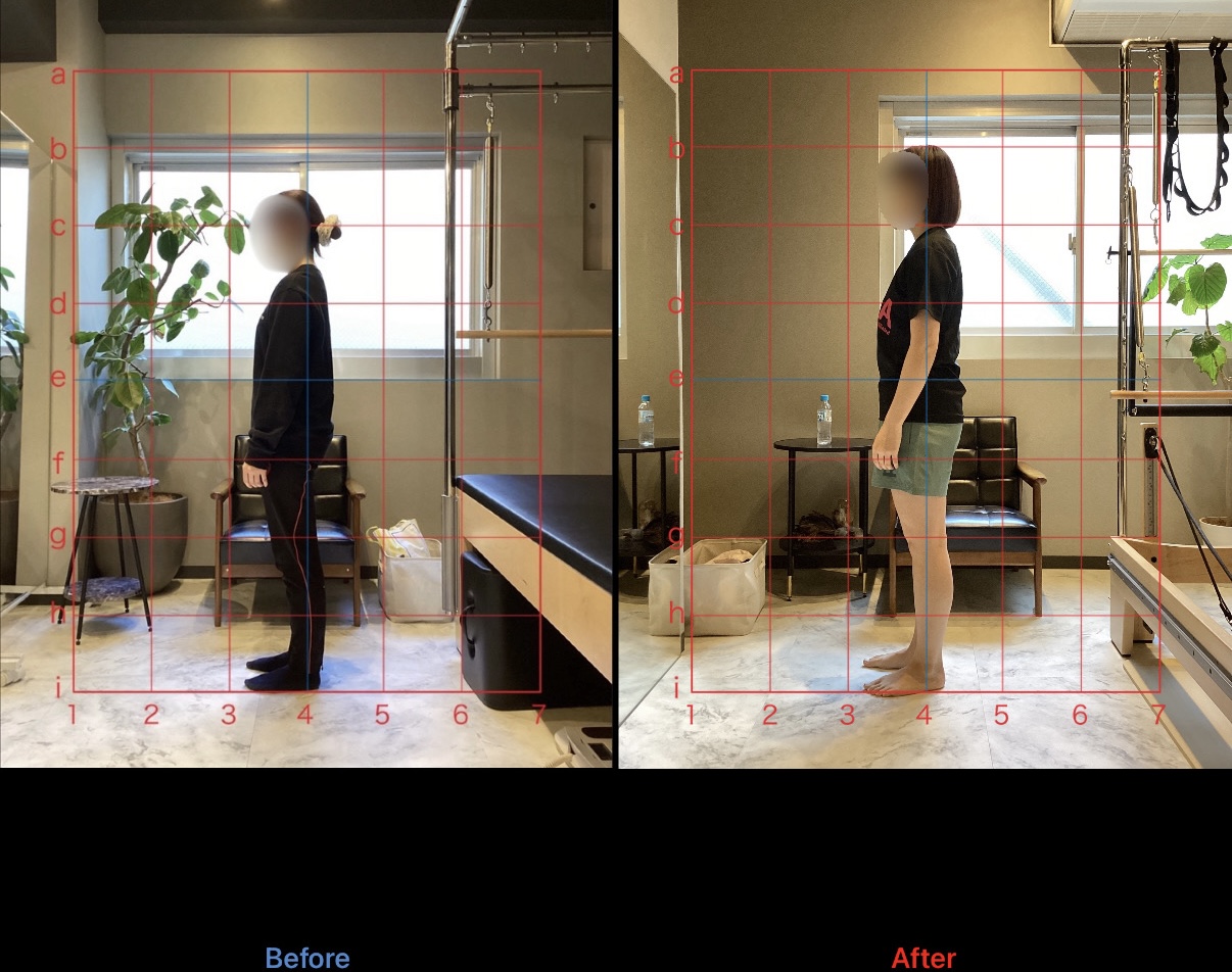 上記の写真は初回レッスン前と4ヶ月経過時点でのレッスン前の比較です。