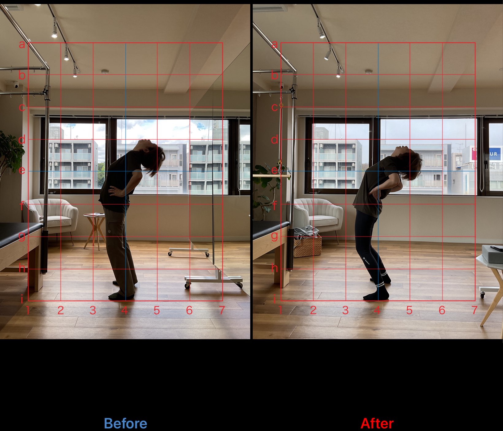 股関節の可動域改善に加え、股関節安定化筋の再活性を実施。呼吸と連動させながら体幹の安定性向上を目的に介入しました。