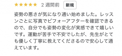 「肩こり・疲れがなくなりスッキリしました!次は身体を引きしめたいです!」と嬉しい感想をいただいております。