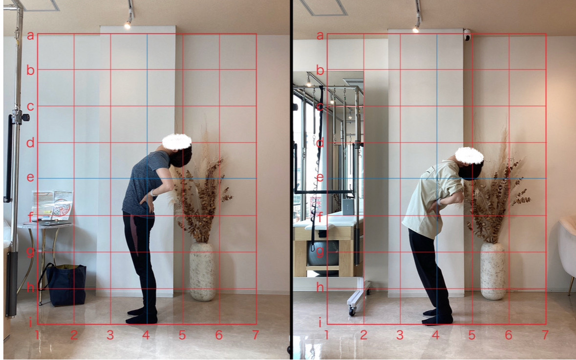 ・上記の背面の緊張が高いことにより前屈をした際にお尻が後方へ退け、足も後方へ傾斜している