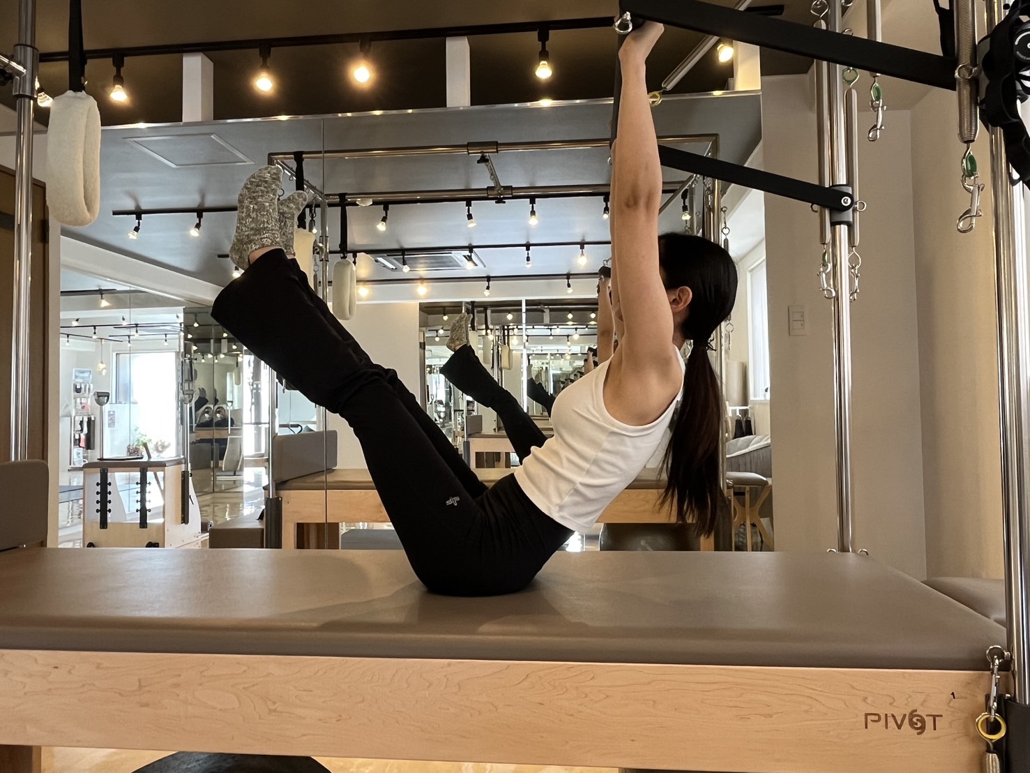 ヨガのインストラクターであり、股関節やハムストリングスの柔軟性は抜群にあるものの、腹部筋力低下、腰椎ラウンドが苦手で胸椎可動域は乏しく肩甲帯周辺の動きも不安定性がある状態でした。まずは腹部を中心としたフロントライン活性と胸椎柔軟性向上を中心にピラティスレッスンを進めていきました。腹部の安定性は徐々に改善、胸椎の可動生改善と肩甲骨周囲の安定性も改善、ヨガのポーズも楽に取れるようになっています。この2年間で、ピラティスのインストラクター資格も取得され、ご自身のレッスンでもピラティスを活かされているとのことです。