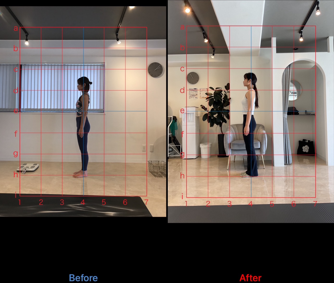 ヨガのインストラクターさんも当店に通われています。ヨガのポーズを深めたい、自分の体を知ることでレッスンにも活かしたいとの要望があり、現在まで約2年間継続されています。ヨガのポーズの比較で、胸椎や肩甲帯の可動域の改善、腹部の安定性の向上が見られています。