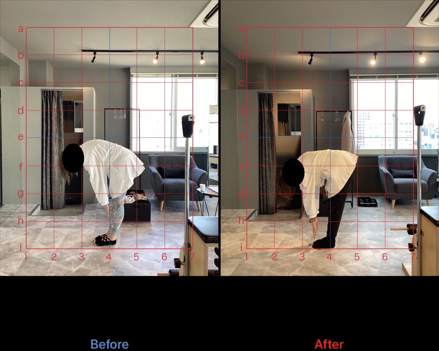 骨盤が前方にシフトしスウェイバック姿勢となり、腹部や股関節周囲の筋のバランスが崩れ一定の部分に負担のかかる姿勢となっていました。