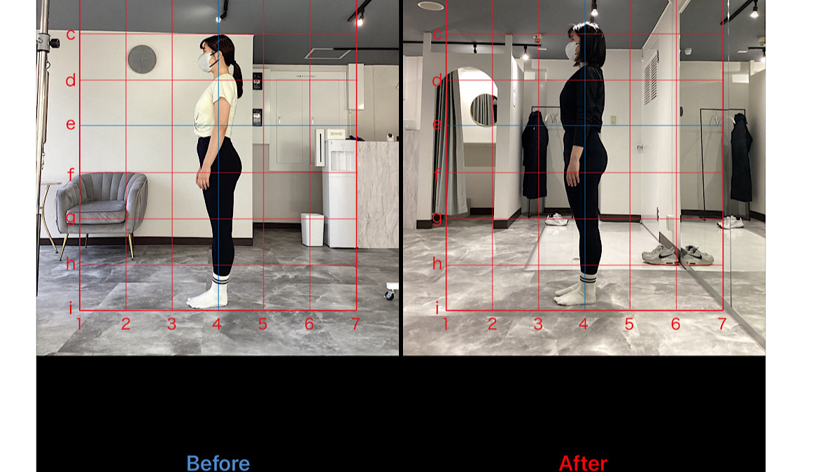 写真は初回レッスン時と3ヶ月継続時点での比較の写真になります。