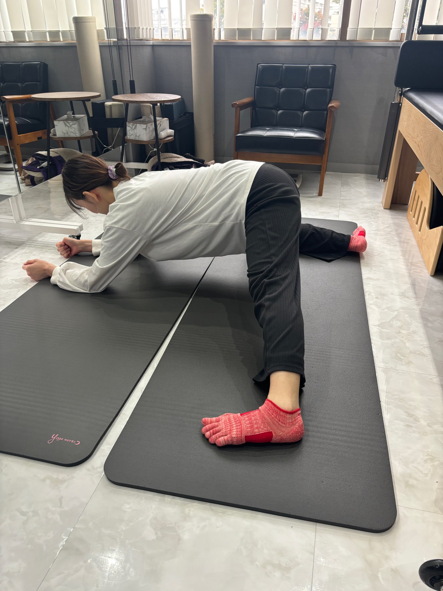 開始1ヶ月の時点で、肩が開く実感を持ててきたため、全身を使うエクササイズも増やしていきながらレッスンを進めていきました。