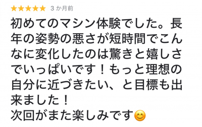 好きな洋服を着れず、巻き肩や骨盤から下半身の体型が気になっていましたが、どのように運動していったら良いのか、自分に合った適切な方法が分からなくなっている状態でした。