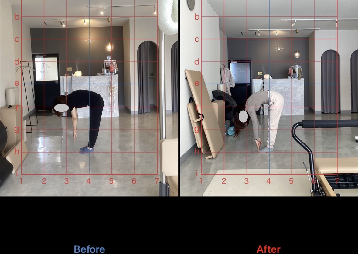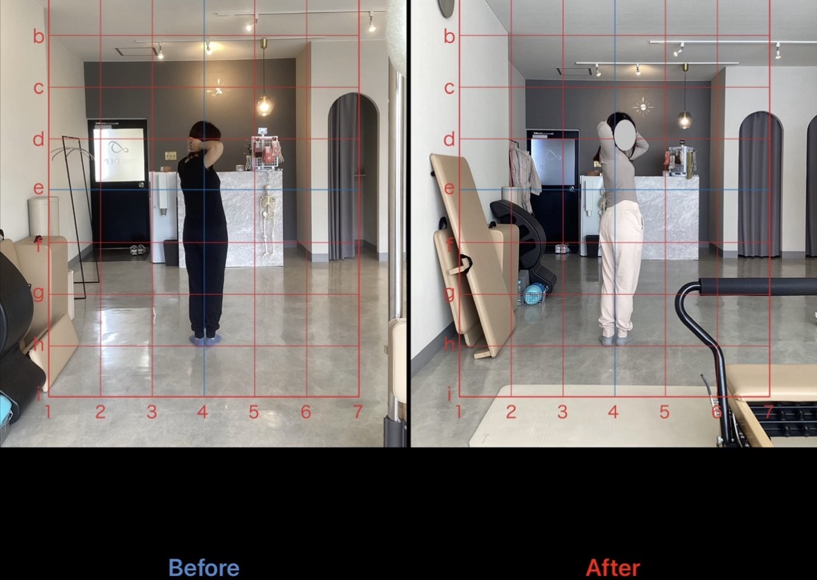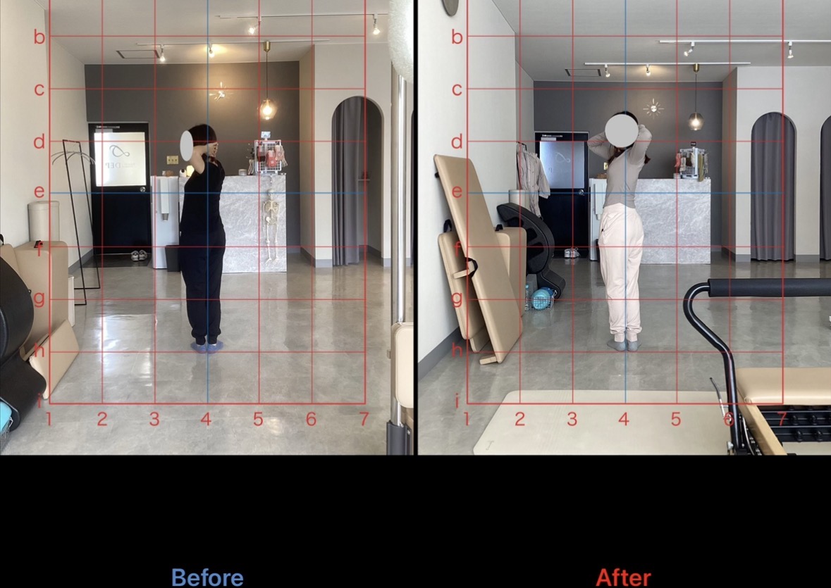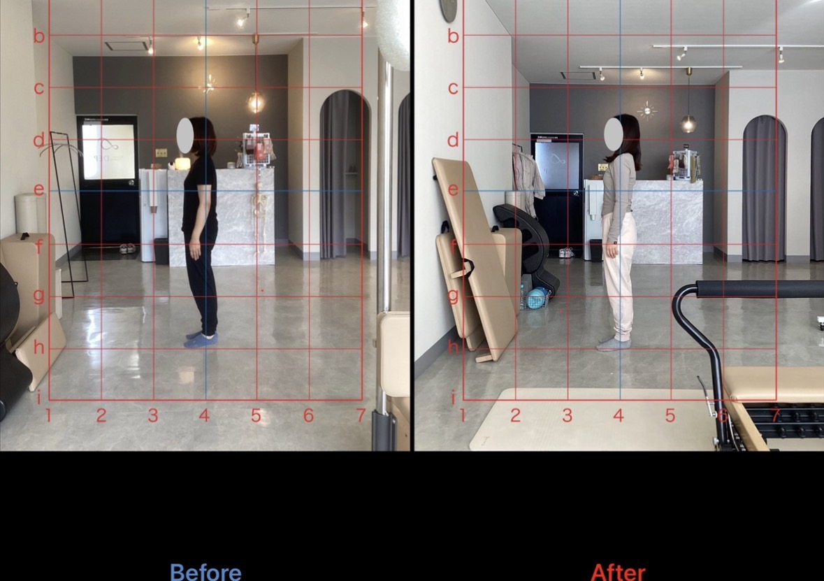 初めは、崩れていた姿勢が正しい重心位置で立てるようになりました。また、股関節や背骨の可動域向上も認め、腰痛や肩こりの不調が大幅に軽減したとのことです。