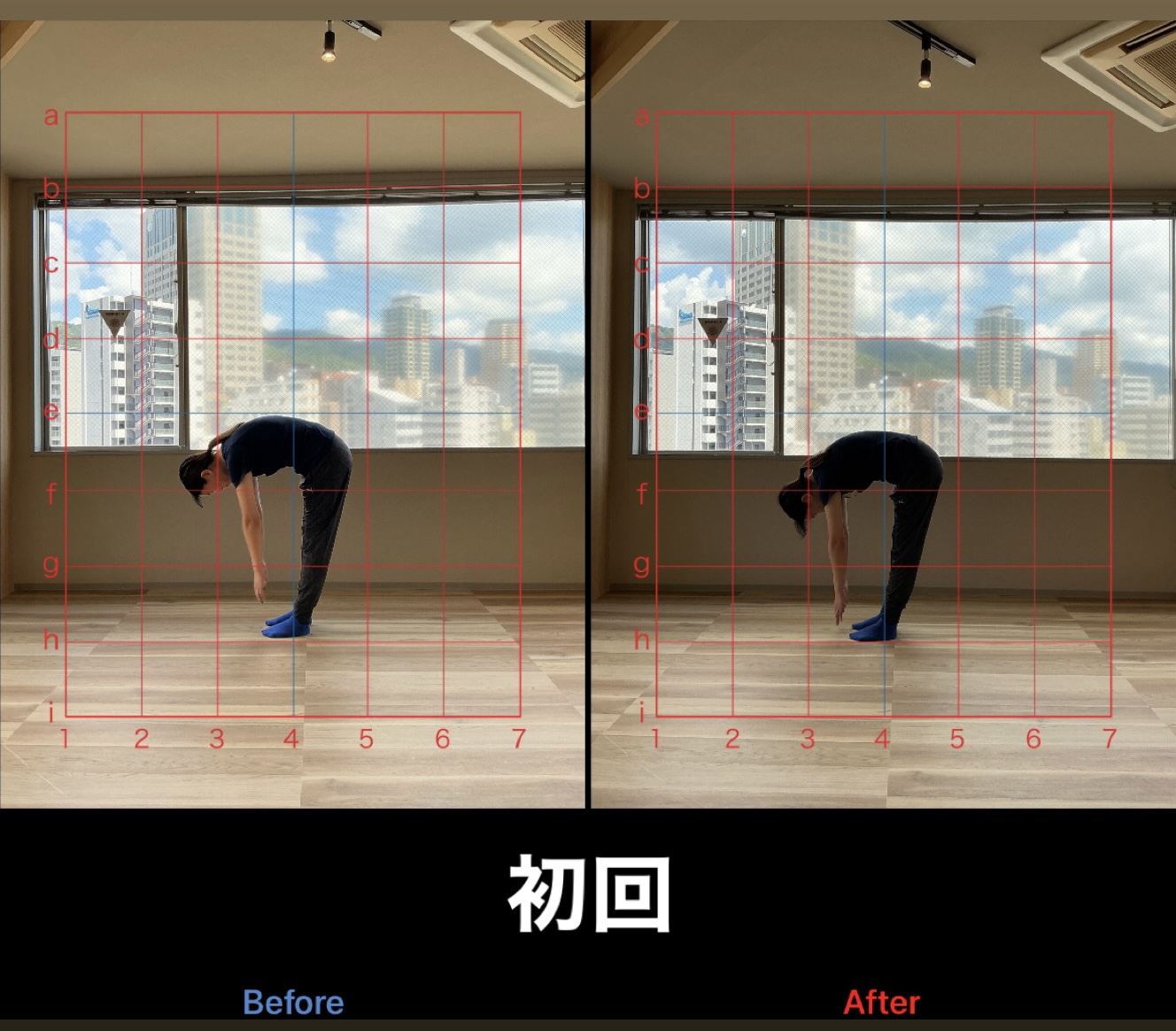ご自身の感覚が入りやすくなった状態で、腹部の筋肉や内もも、お尻の深層筋を意識的に使うことで、脚のアライメントも改善されていきました。