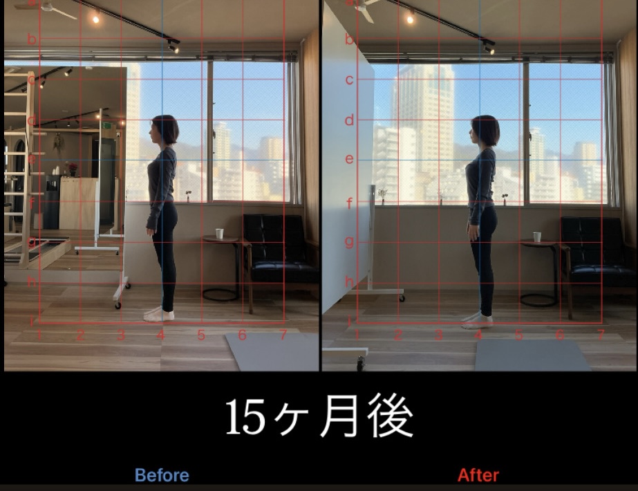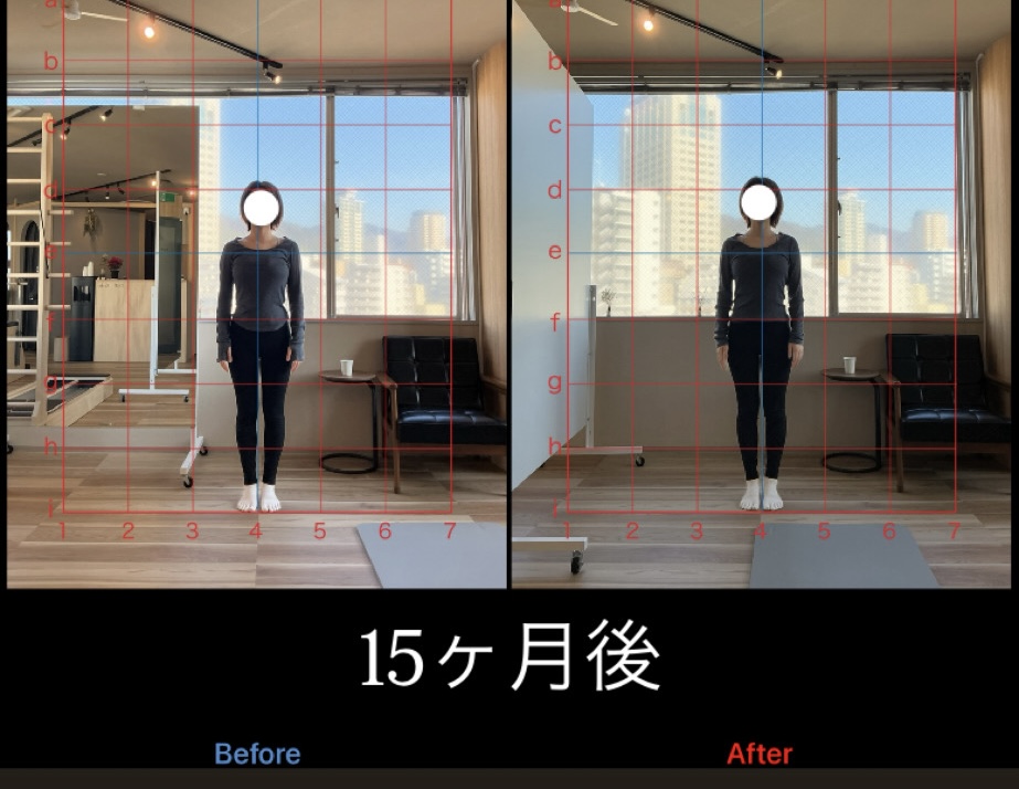 上記は、月2回のパーソナルレッスンで1年半継続してご利用いただいている20代のお客様の変化です。初回ご来店時には「前撮り・結婚式で1番キレイな姿で写真を撮りたい」と当店を頼ってくださいました。