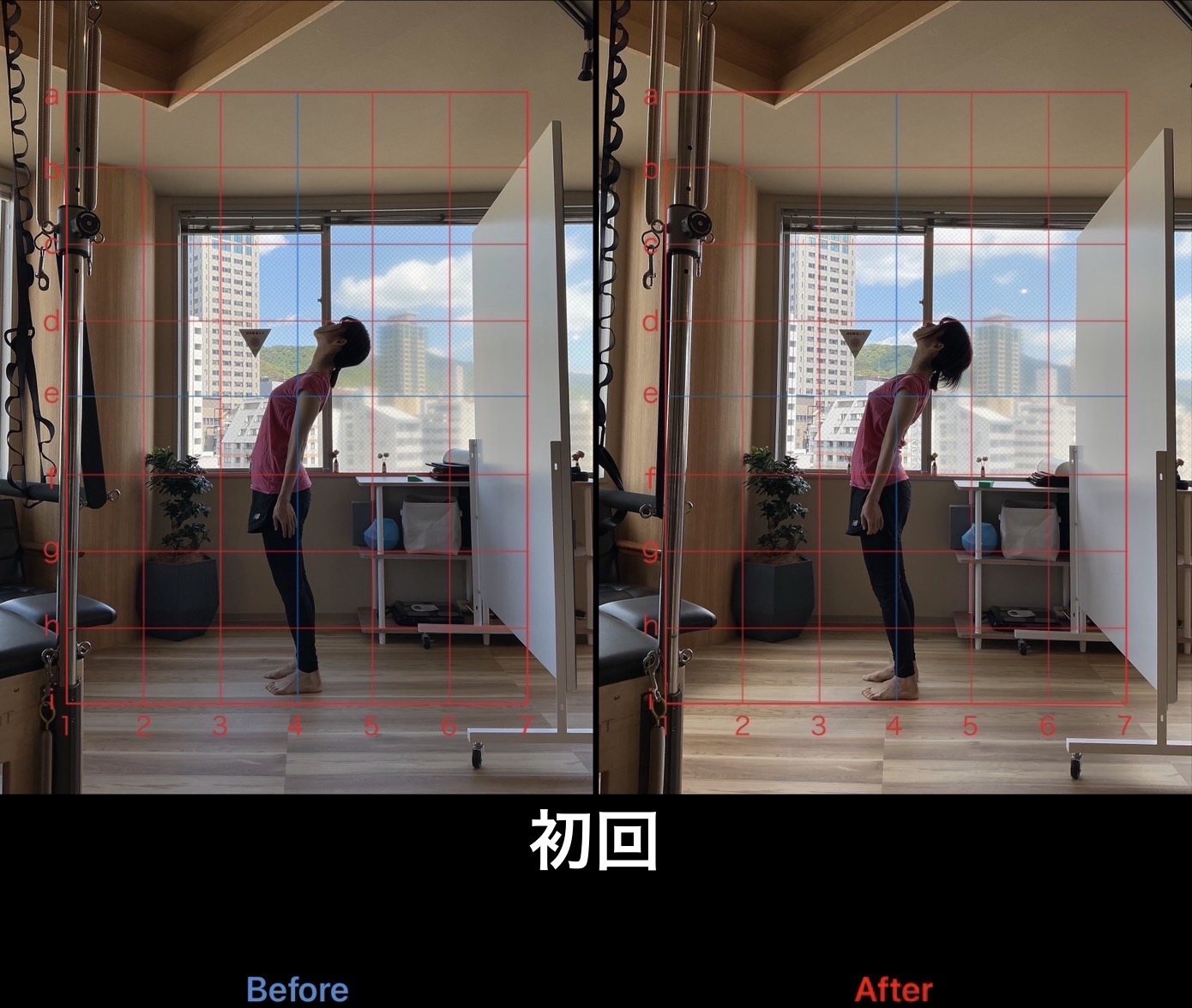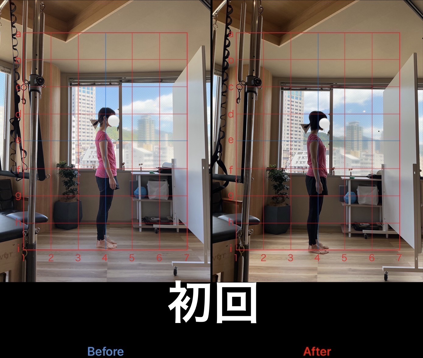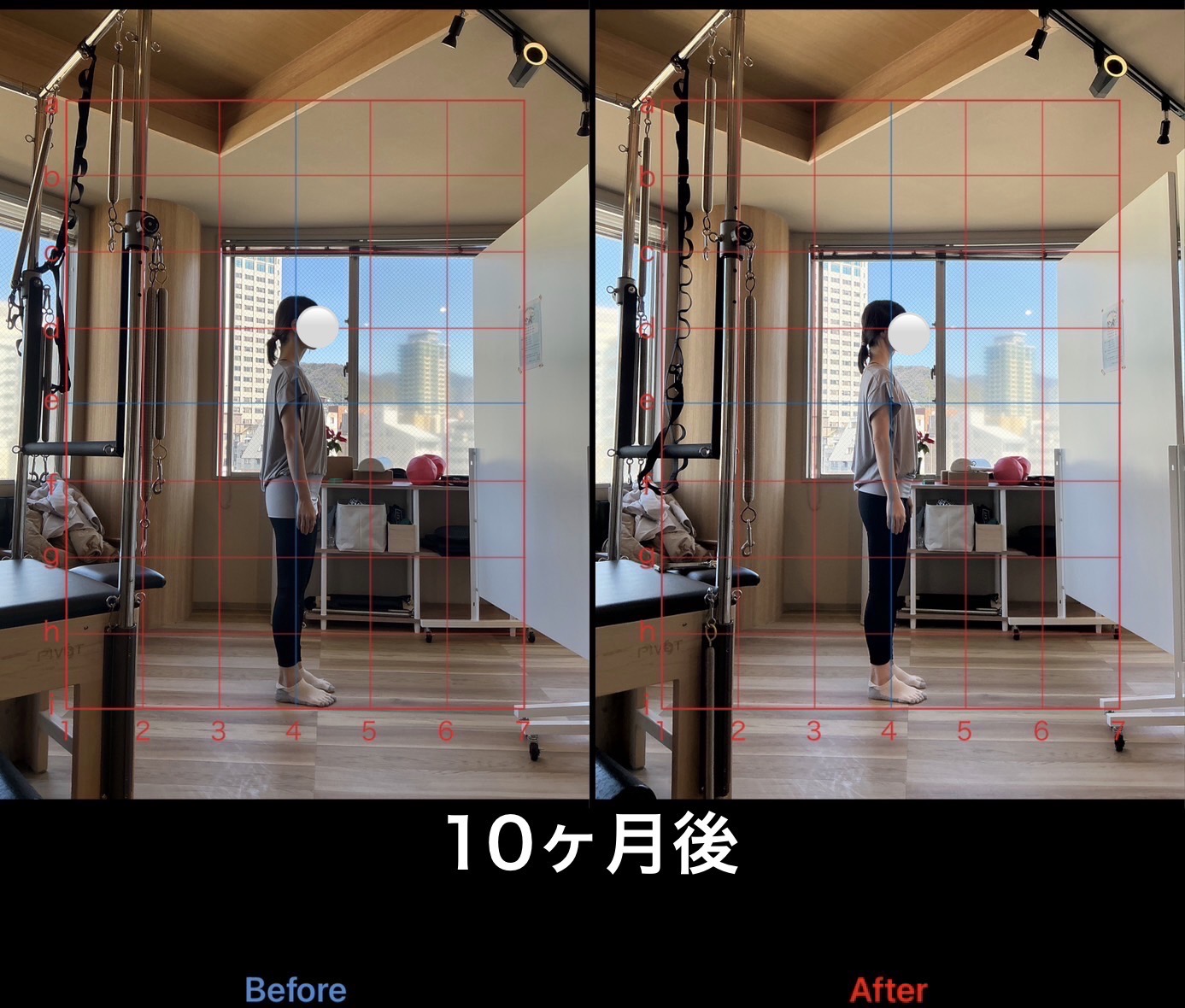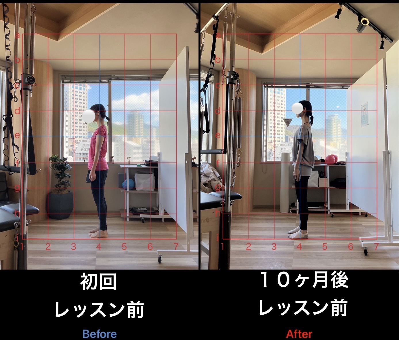 上記は姿勢改善を目的に月2〜4回、約10ヶ月継続して通われたお客様の姿勢変化です。元々、筋トレなどで体を動かす習慣はあるがどうしても下腹だけが凹まない、違和感のない姿勢になりたいと当店を頼ってくださいました。