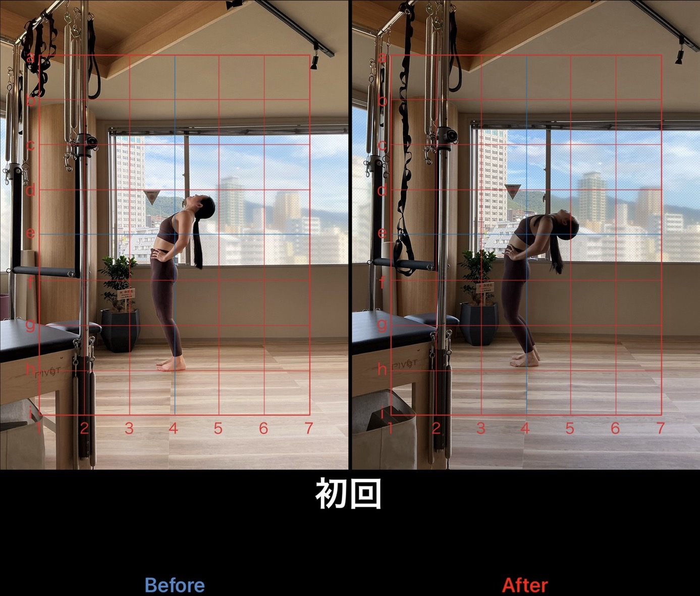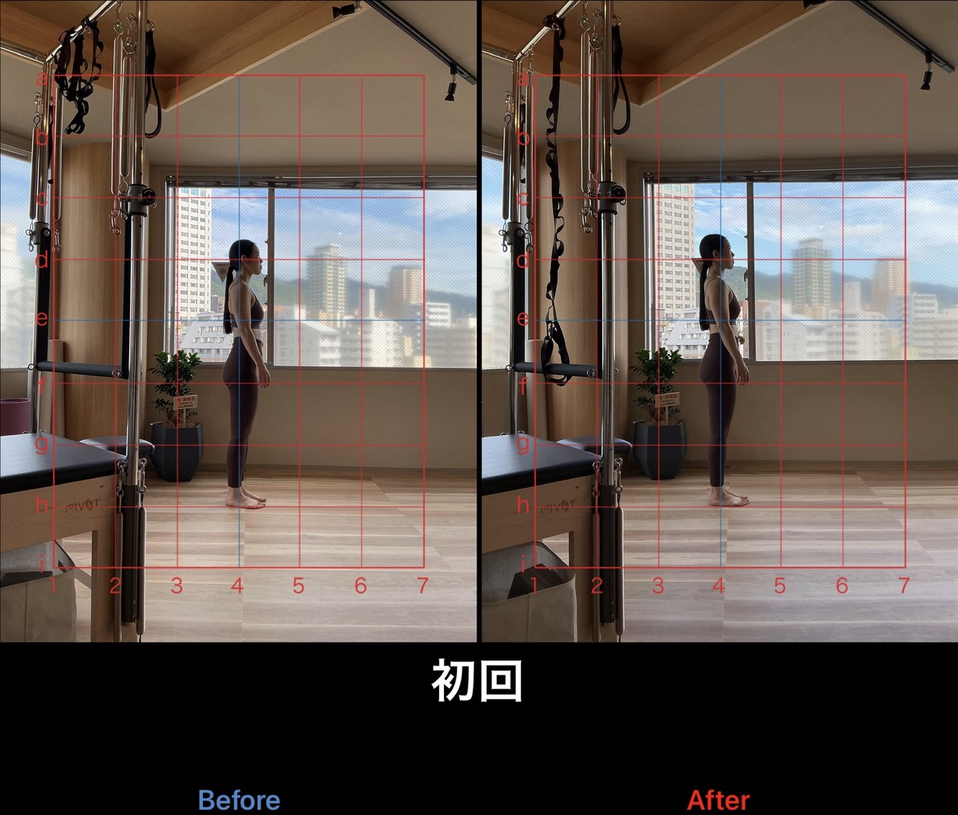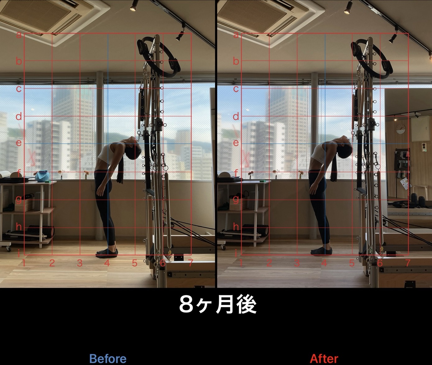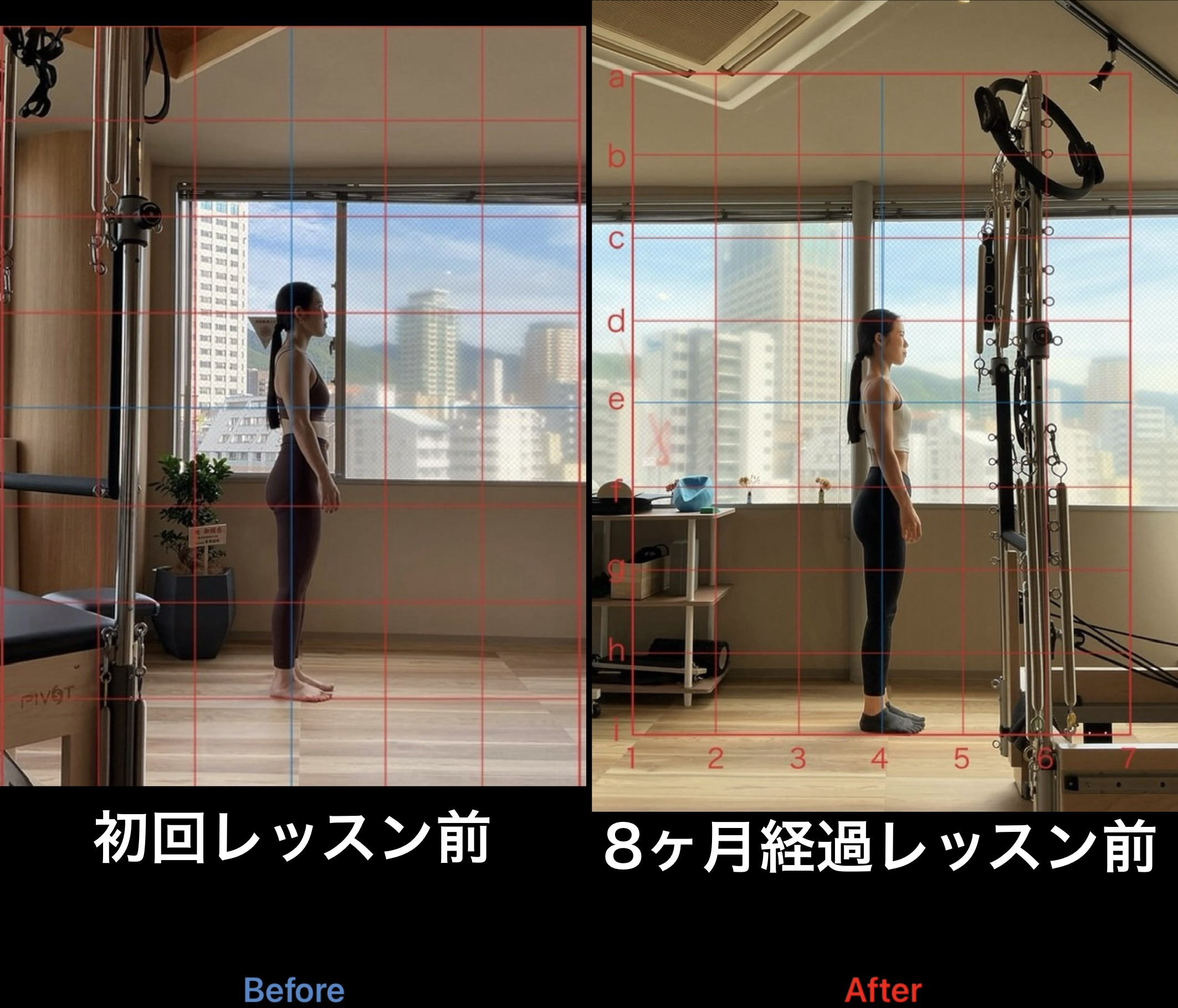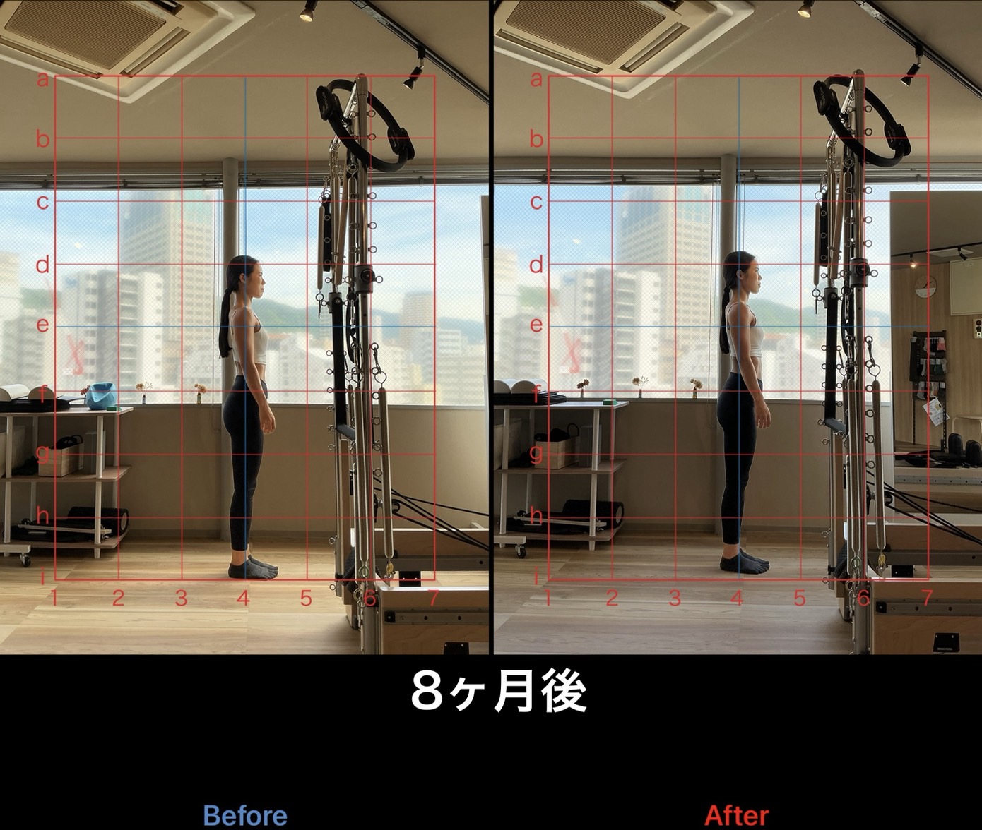 上記はスタンダードプラン(月4回)で通われていたお客様の初回レッスン時と8ヶ月経過時の比較写真です。