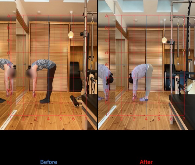 初回来店時は骨盤が前方に移動したスウェイバック姿勢と反り腰が目立ちました。現在では骨盤の位置が修正できてきて前屈、後屈動作ともに可動域も改善してきておられます。