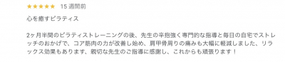 身体の痛みはまだありますが毎回レッスンで身体を動かすことでスッキリします。ピラティスも楽しく続けられているのでこれからも自分のペースで続けていきたいです。
