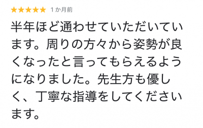 猫背や反り腰も改善し、前屈・後屈の可動域も大きく改善しております。