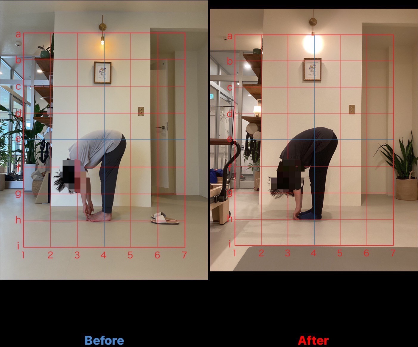 上記の写真は初回レッスン時と1年2ヶ月経過時の比較写真です。
