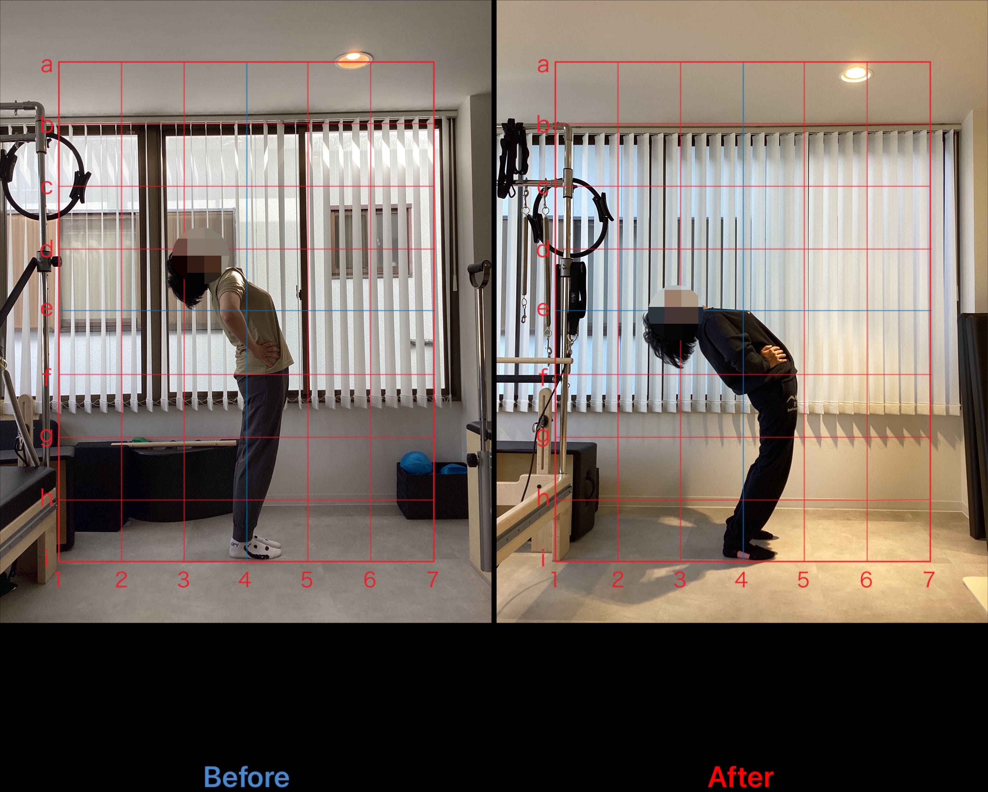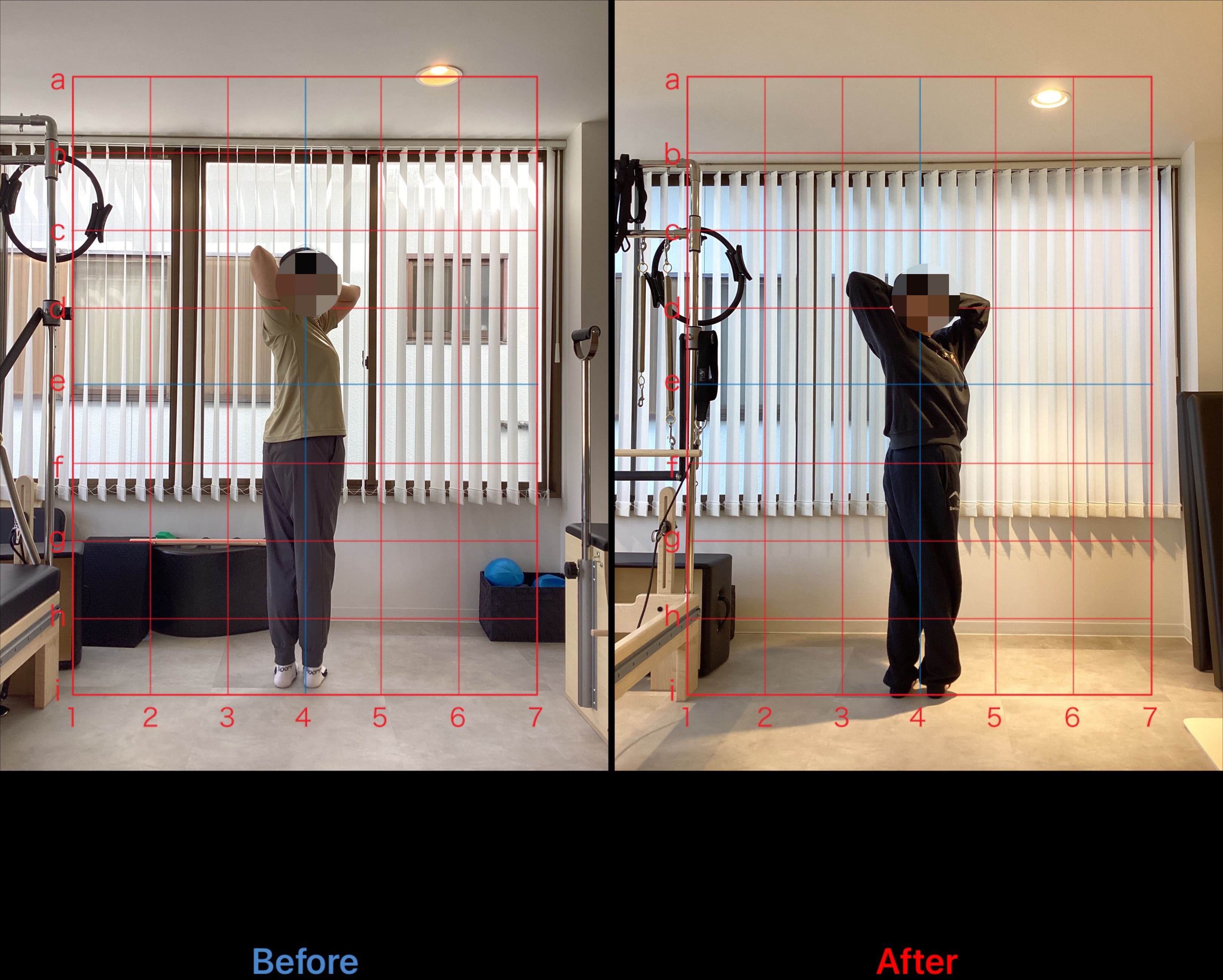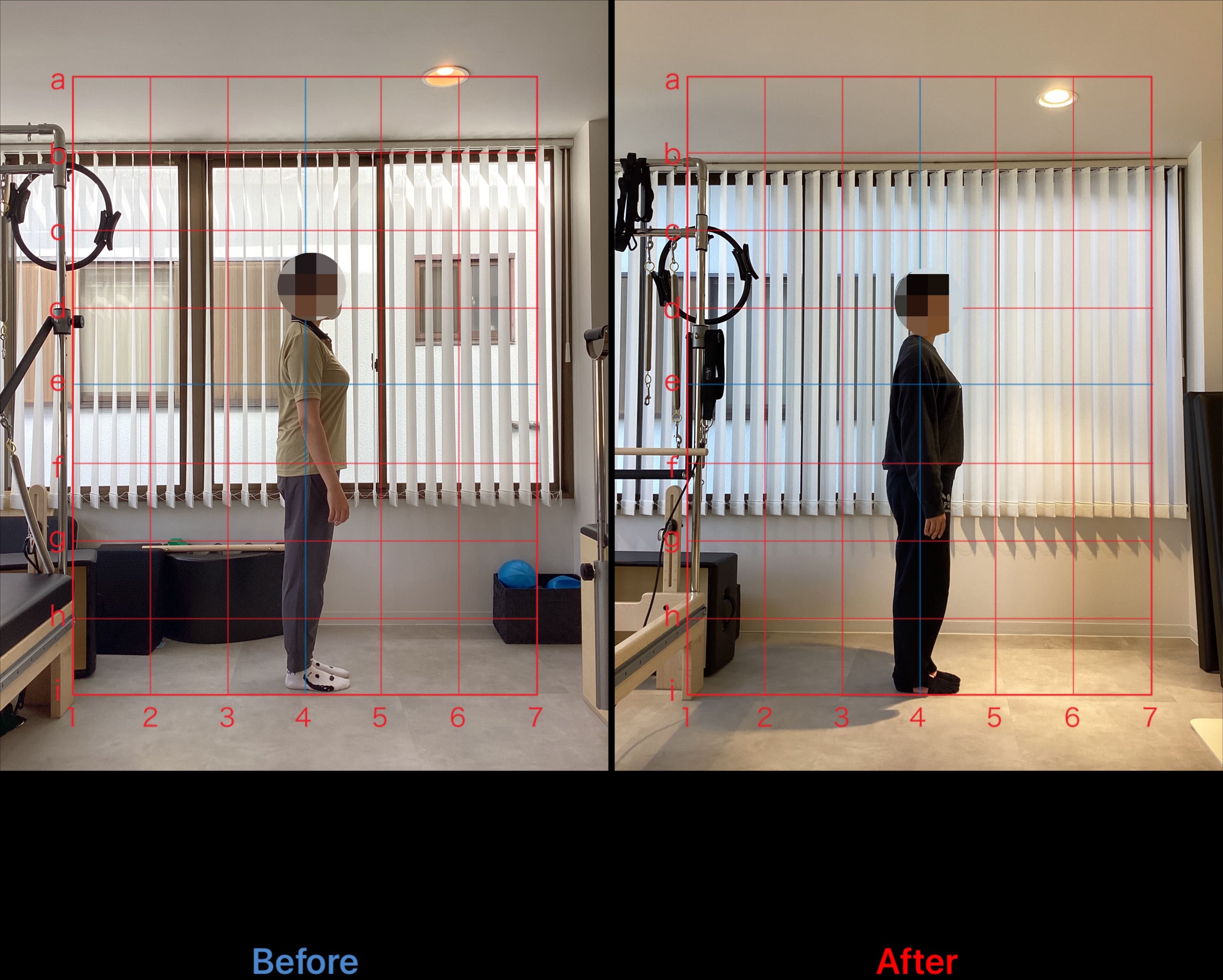 初回レッスンと2ヶ月経過時の比較写真となります。