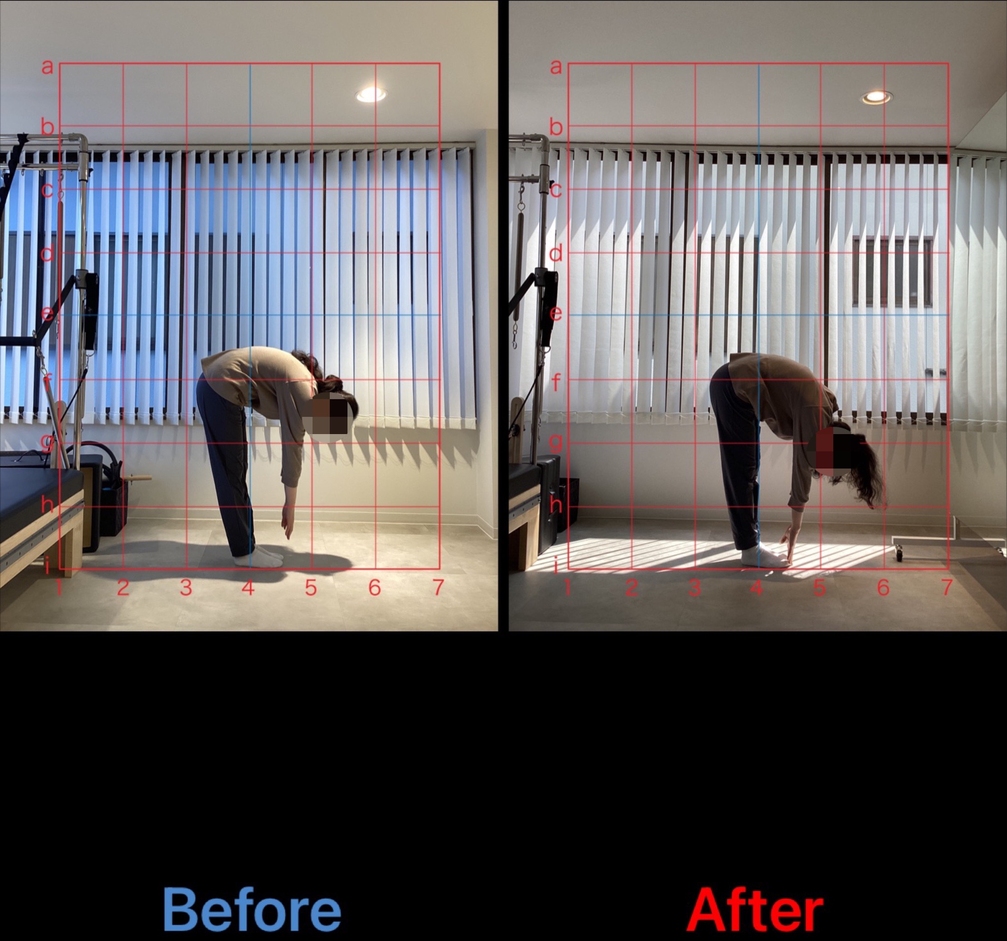 姿勢が整い、レッスン前でも見違えるほど変化していることがわかると思います。