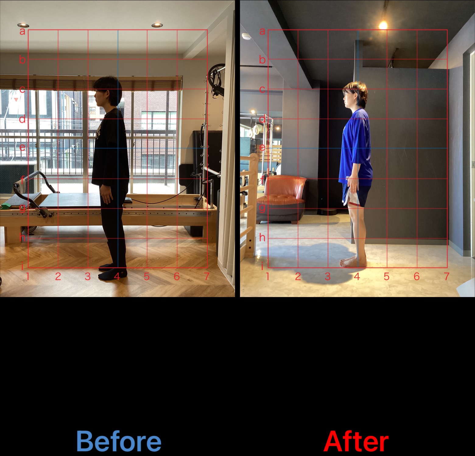 上記は初回レッスン時と1年半経過時の比較写真となります。