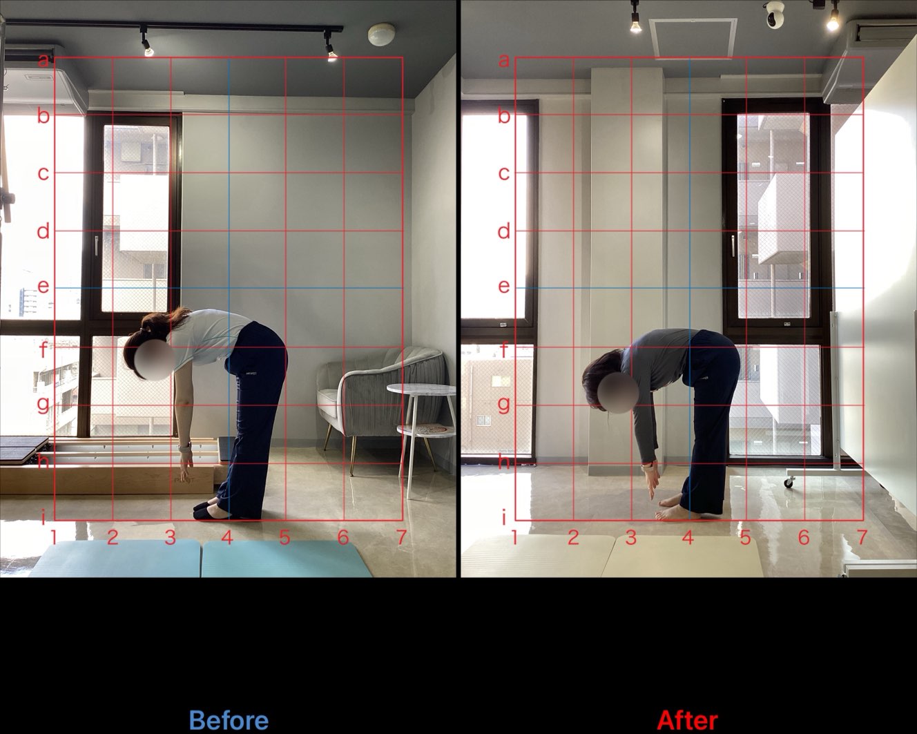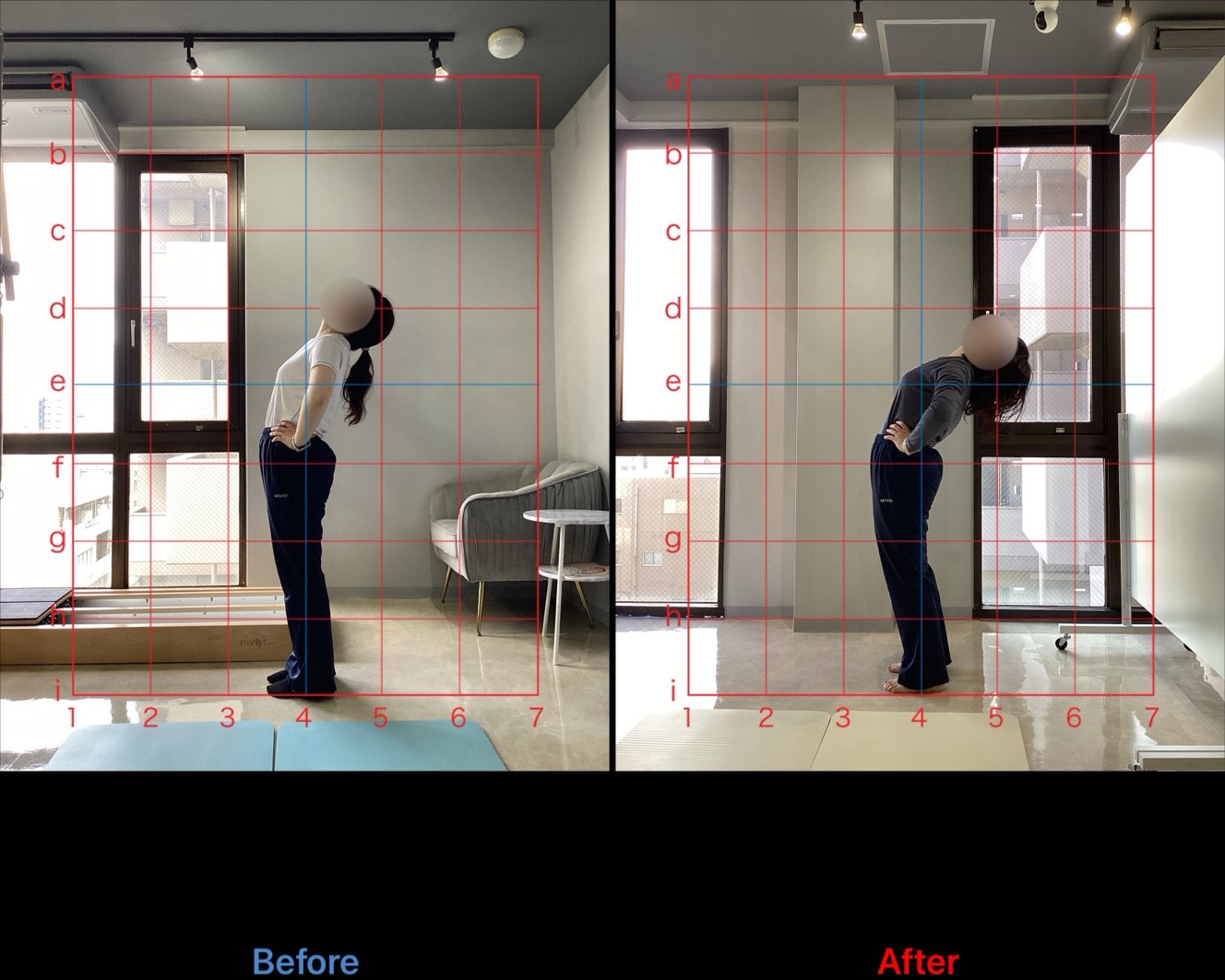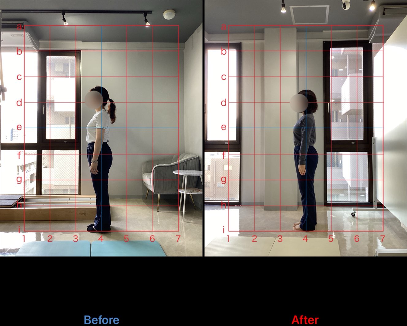 4カ月での姿勢の変化を一緒に確認し「すごい!やってるかいがあります。最近では日頃の意識も変わりました。」と嬉しいお言葉もいただけております。