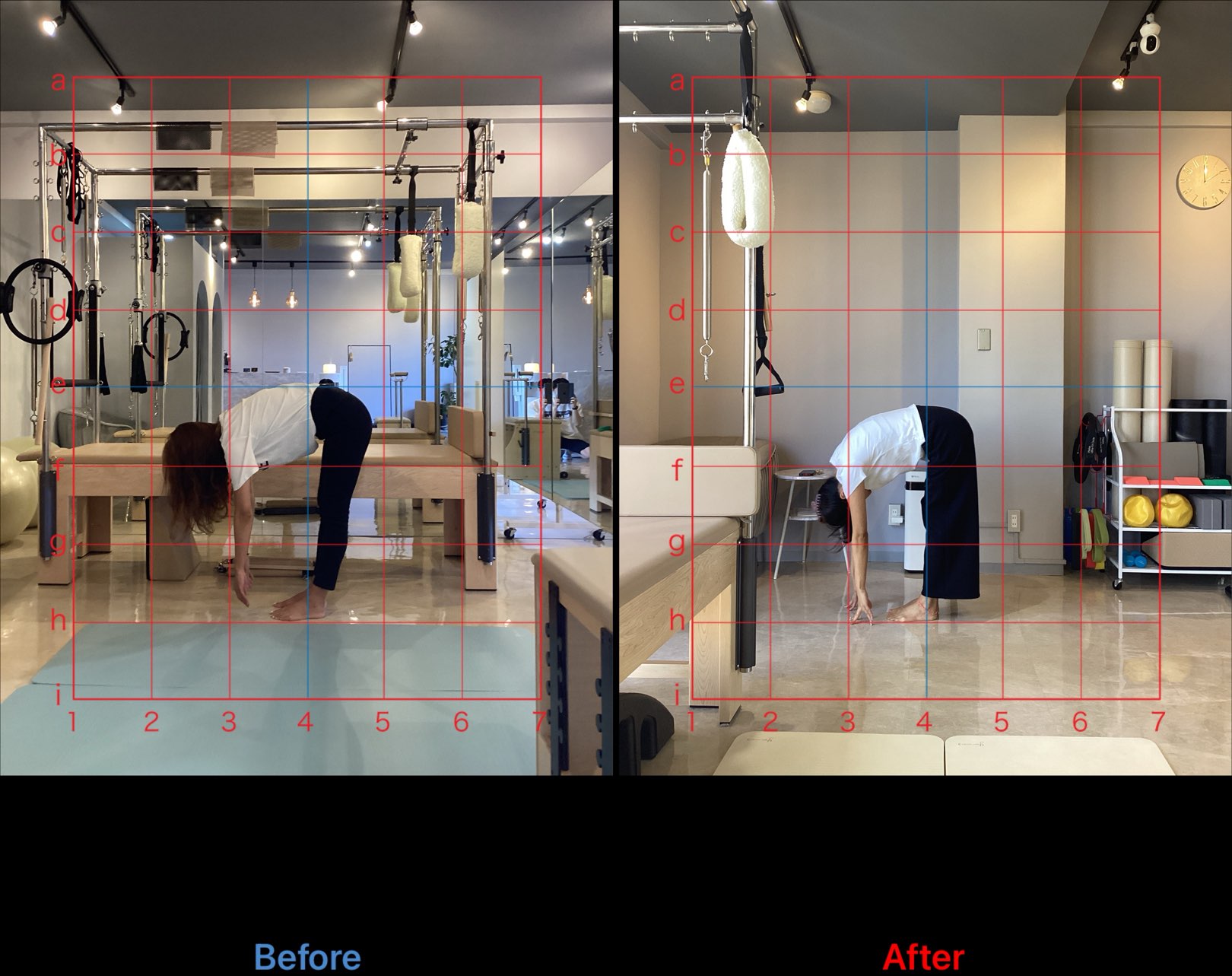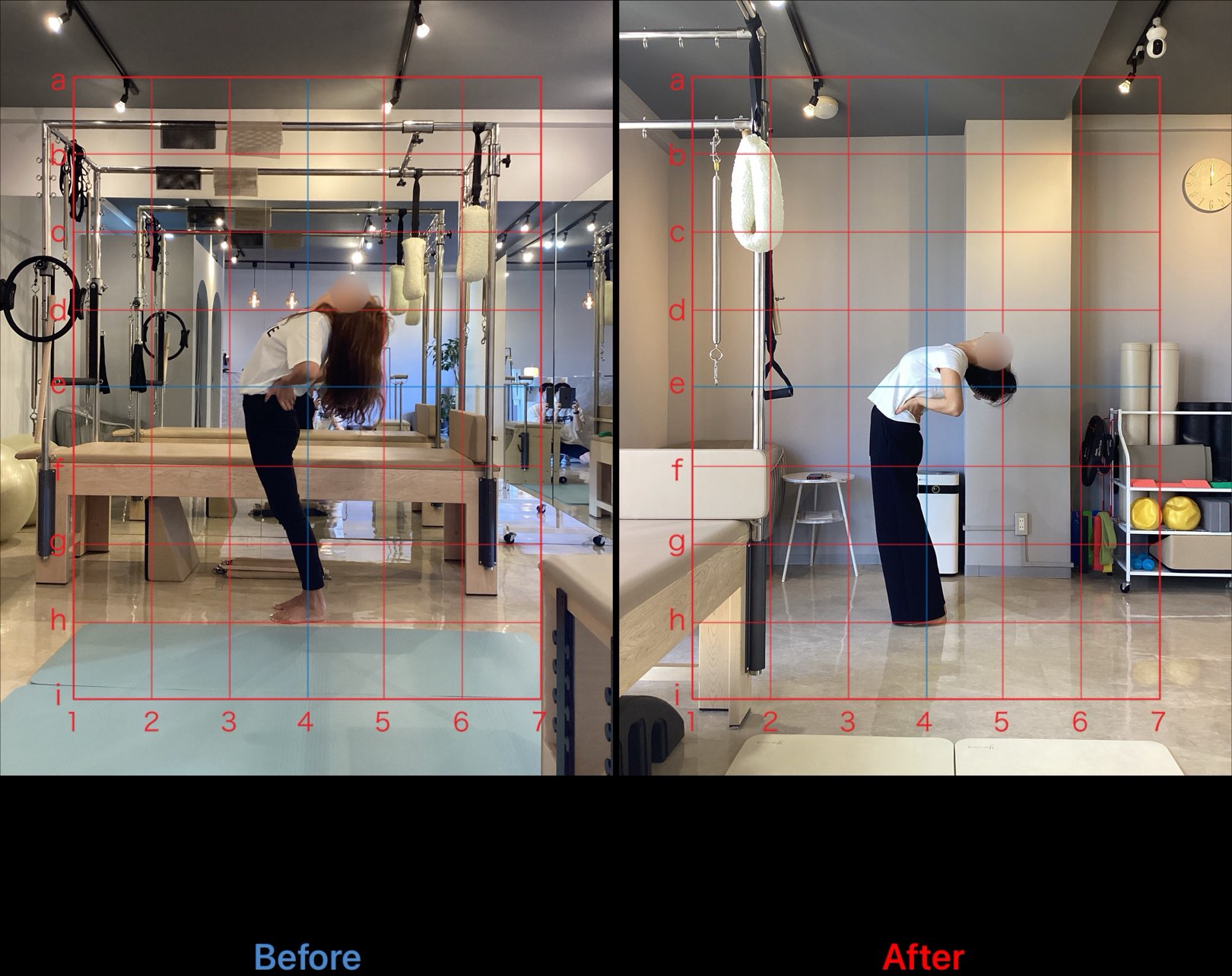 介入初期より腹筋の活性化を目的としたアプローチをしていきました。次第にピラティスでいうロールアップ(腹筋様の動き)ができるようになってきて、そこからは体の前面と後面を同時に使い、さらにコントロールするような動きを取り入れていきました。徐々に姿勢や動きは良くなっていきました。