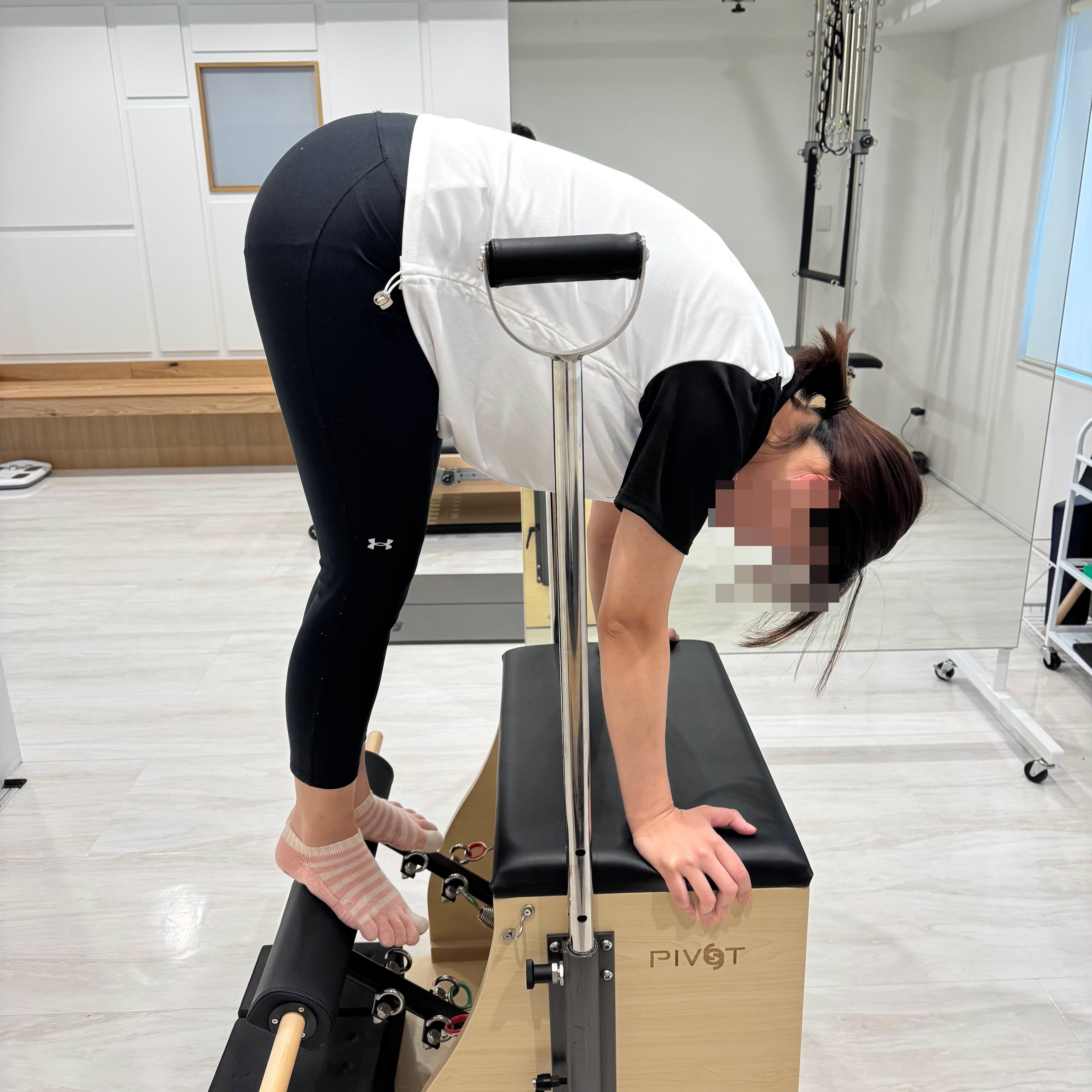 反り腰傾向であるため、骨盤後傾方向の運動や脊柱を丸めるエクササイズを多めに実施しました。同時に股関節が正しい位置になるよう股関節のエクササイズも並行して実施しています。その後、体幹を安定させた状態で肩関節や肩甲骨の運動を取り入れることで、猫背や肩こりに対してのアプローチをしています。