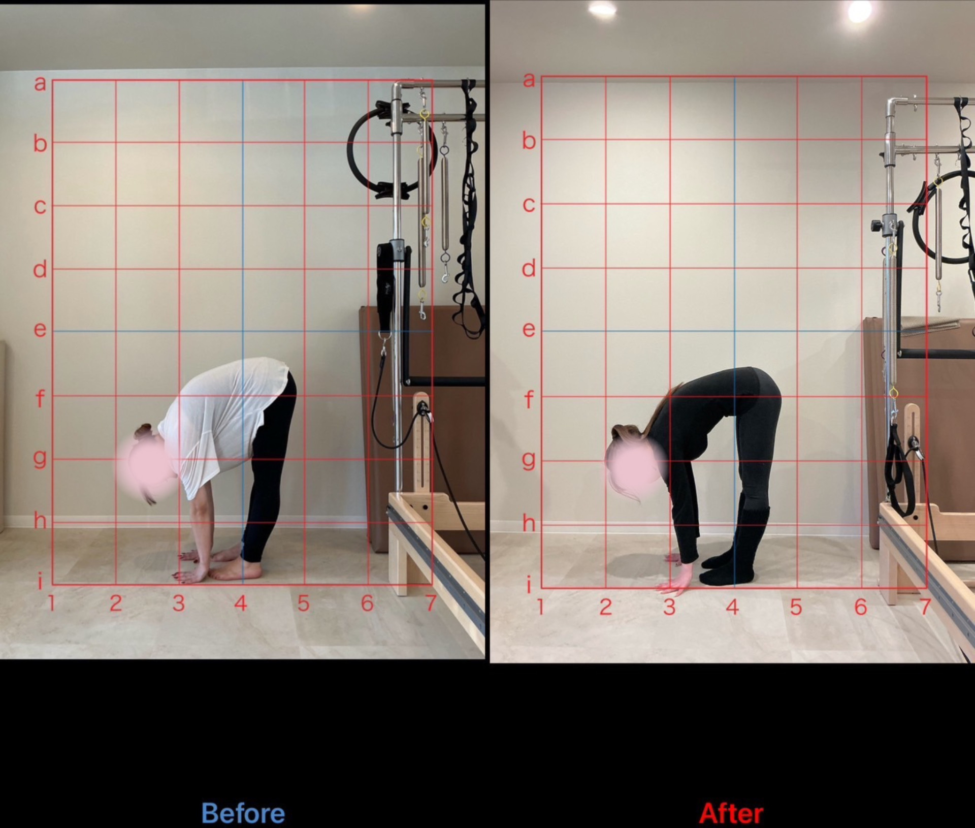 比較写真を見て「姿勢が上に伸びている!股関節の位置も後ろにひけており嬉しいです!」と嬉しいお言葉をいただきました。
