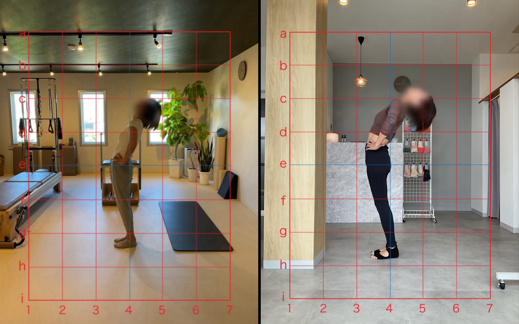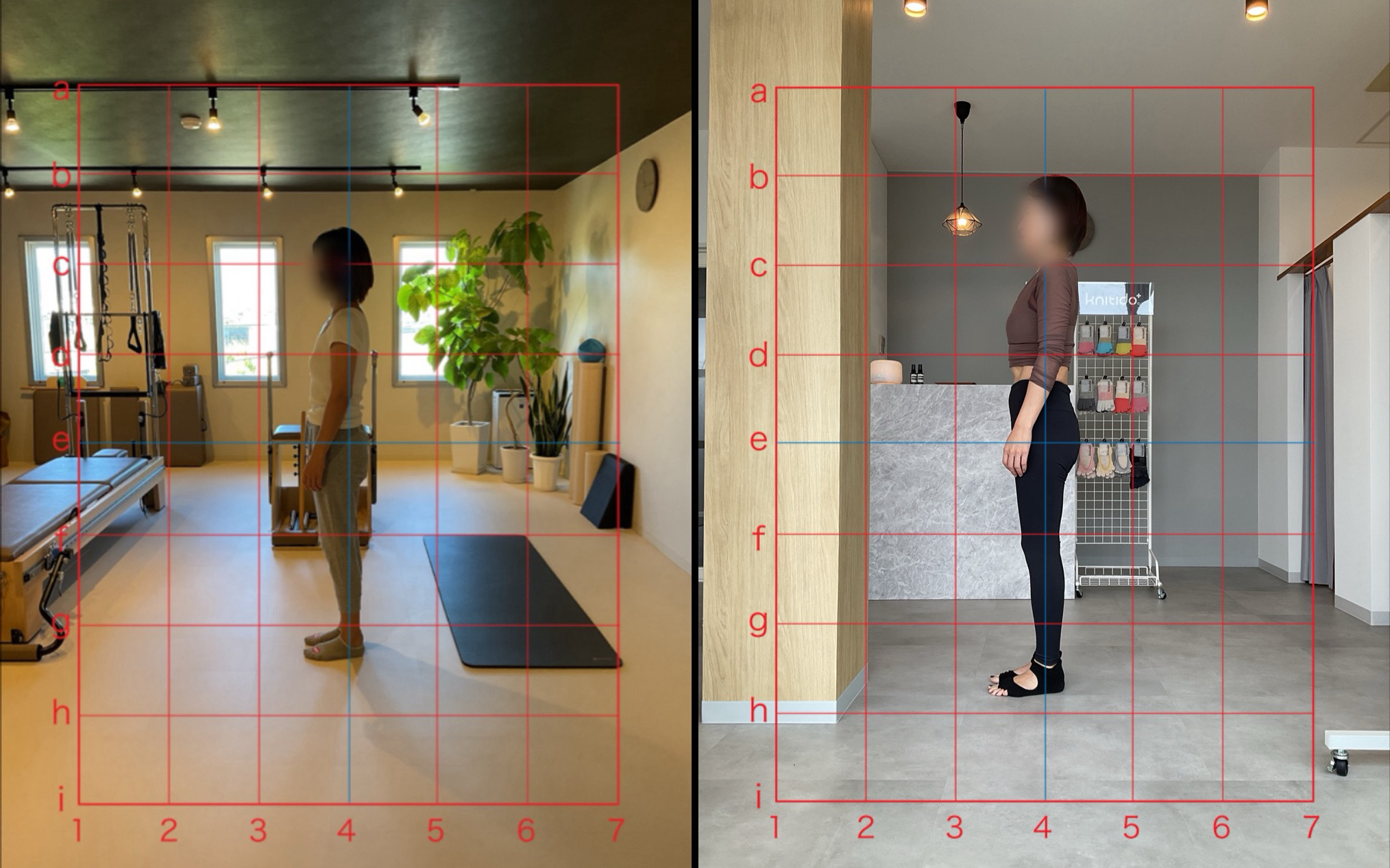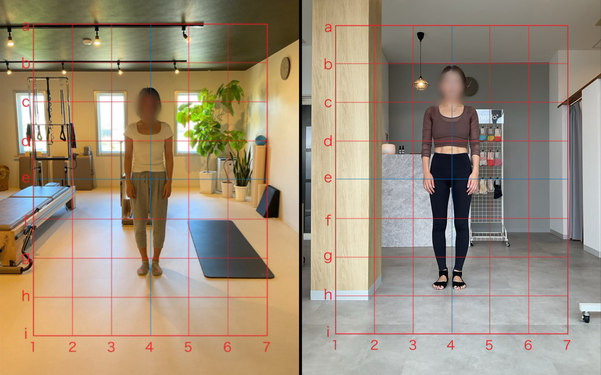 姿勢では頭や骨盤の位置が変わり、ウエストが引き締まっているのが写真上でも分かります。