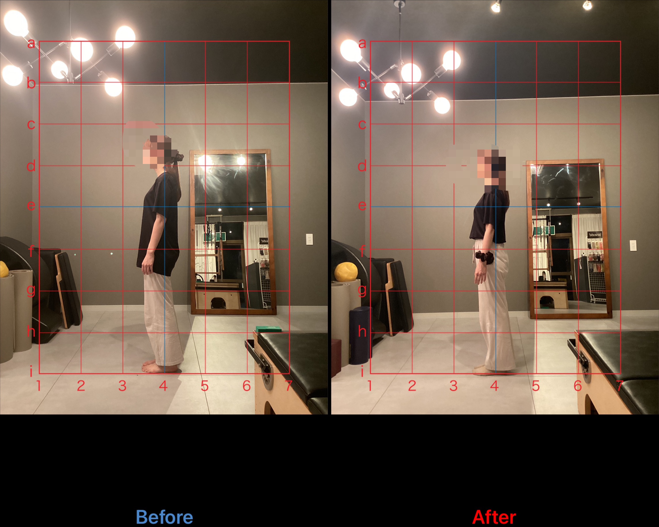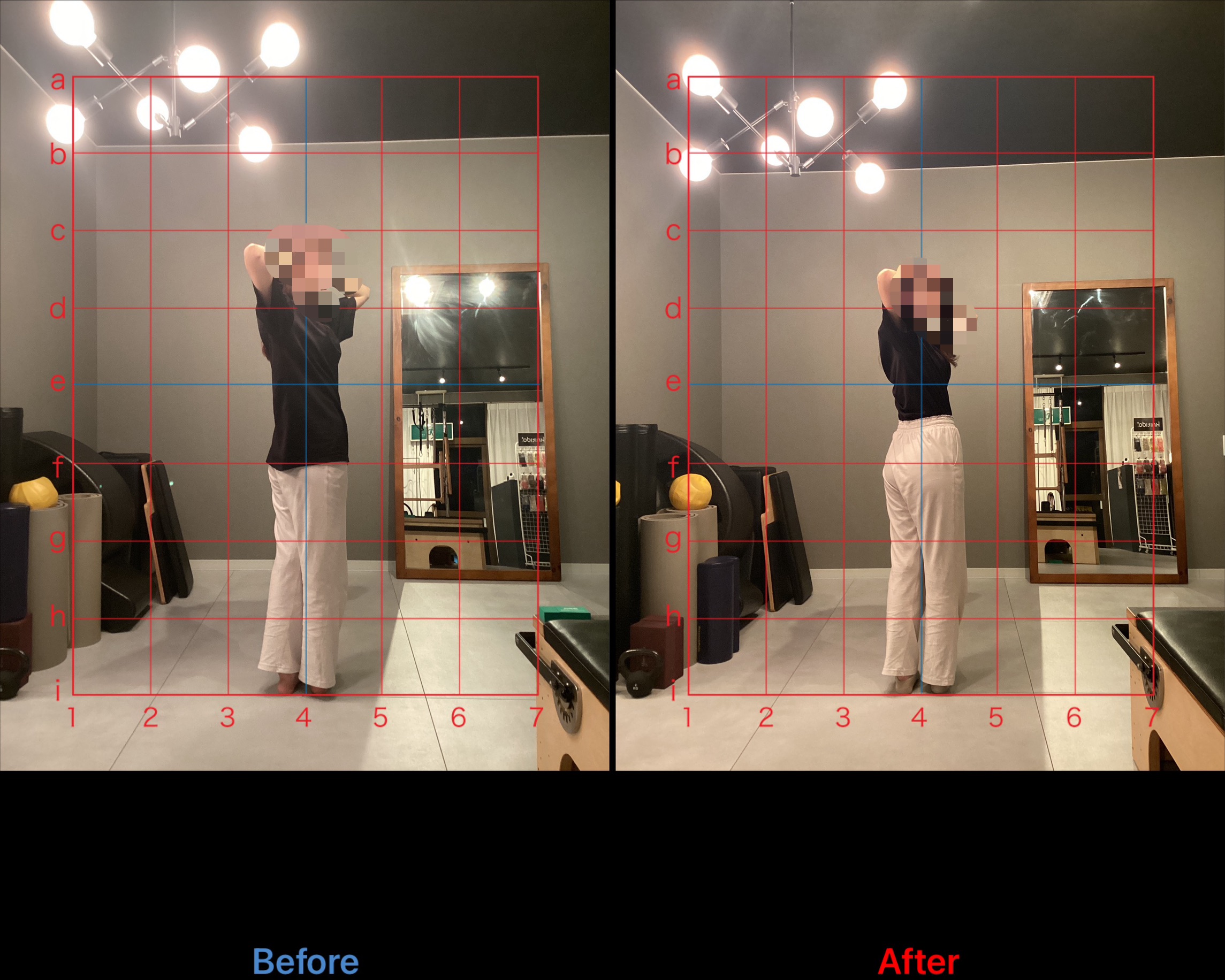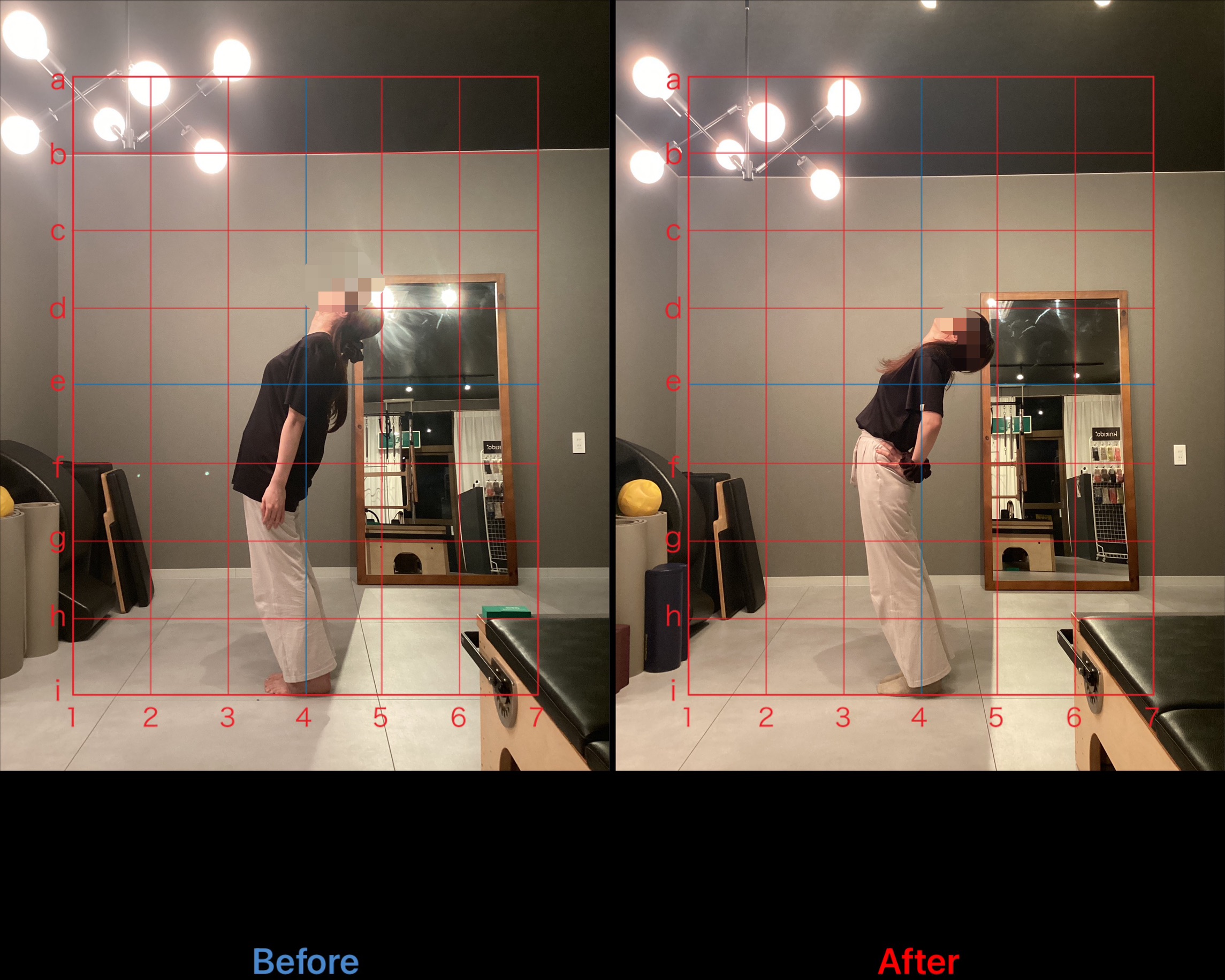 上記は初回体験時と2回目のパーソナルレッスン後の比較となります。