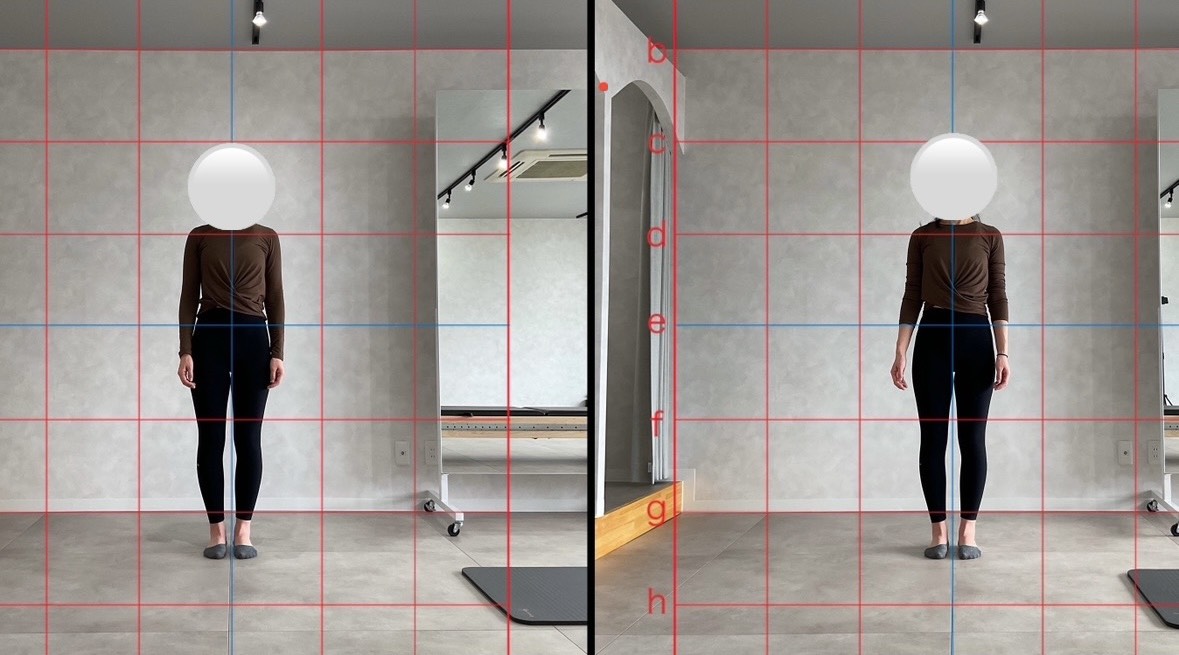 正面写真では下肢アライメントの左右差、足部外側荷重がみられました