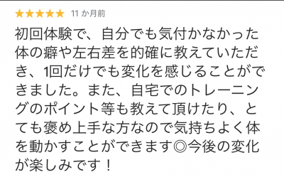 1回のレッスンの変化に驚かれ。その後も継続的なレッスンに通ってくださっています。