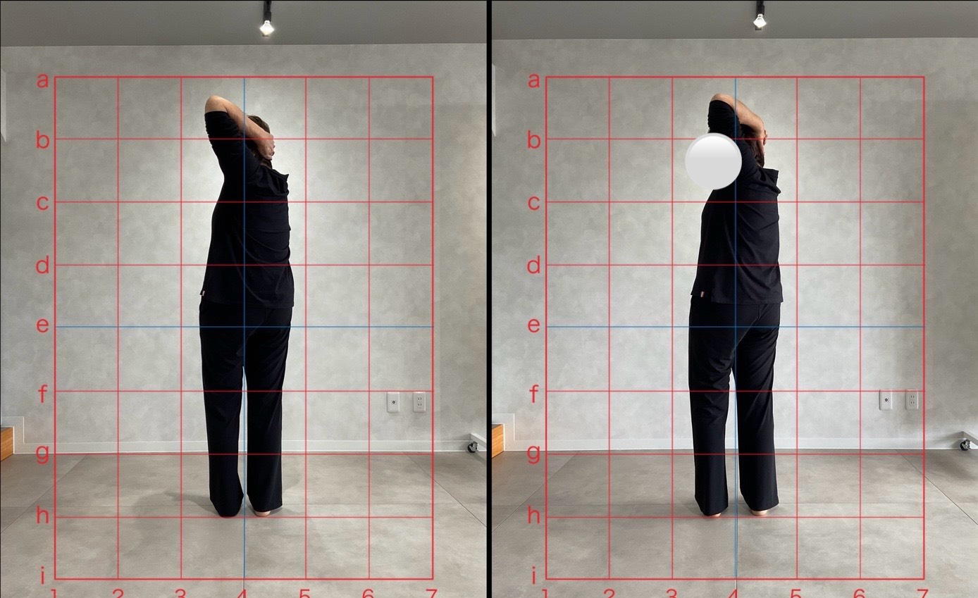 両足、背骨、肩のアライメントの左右差