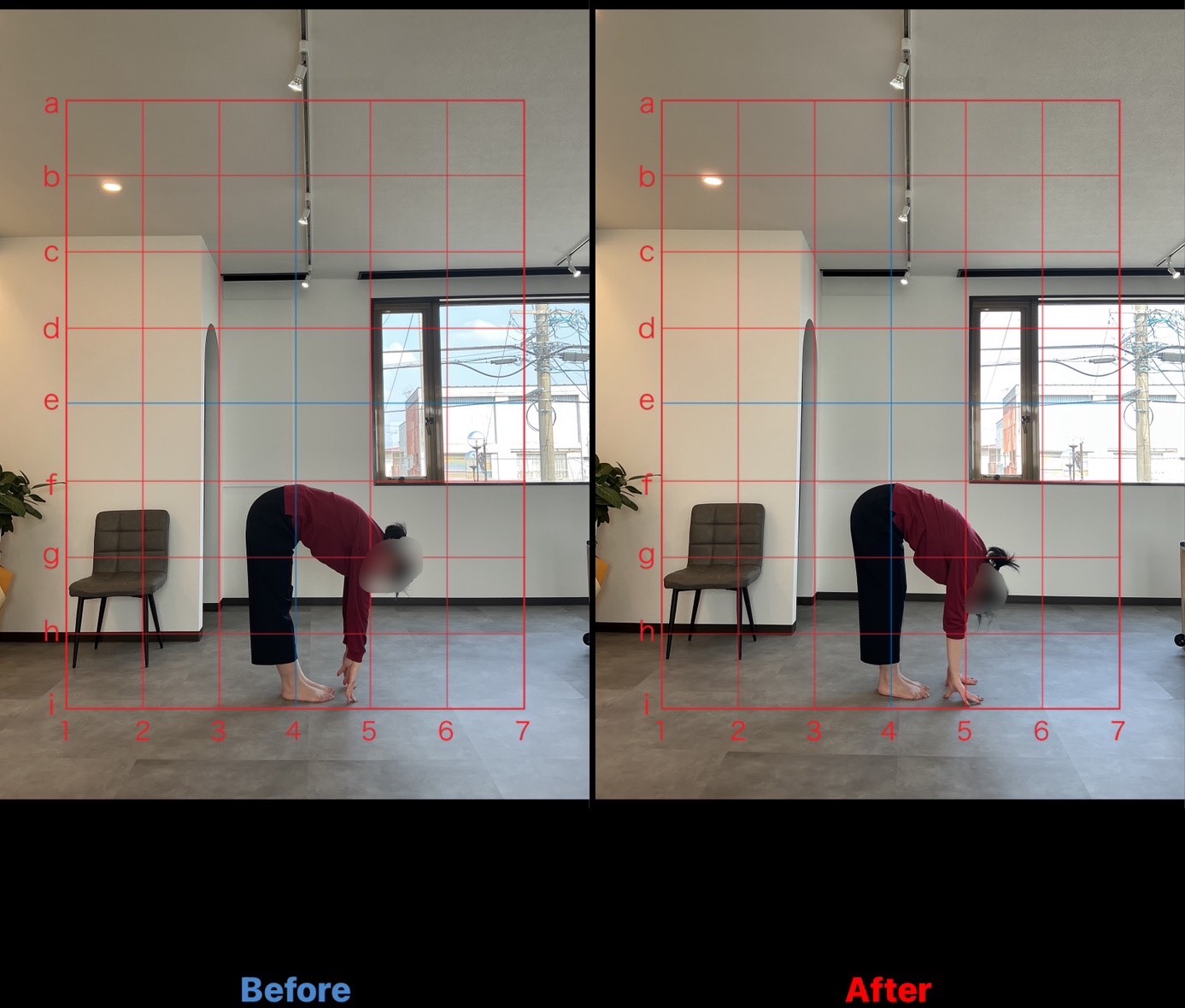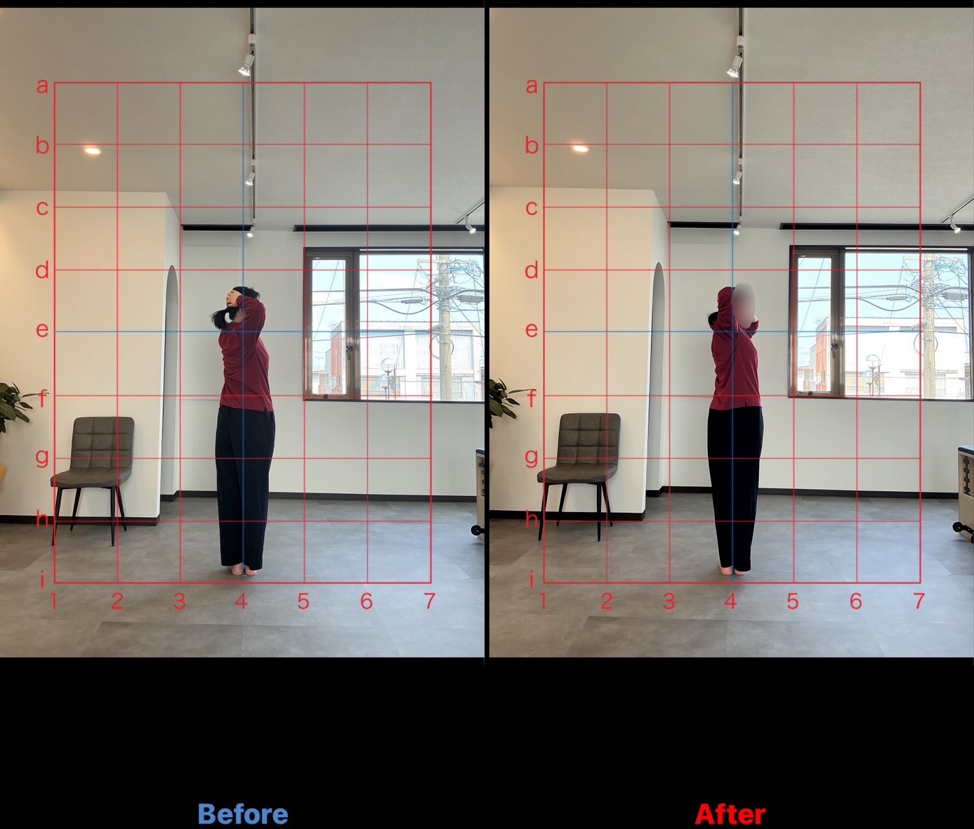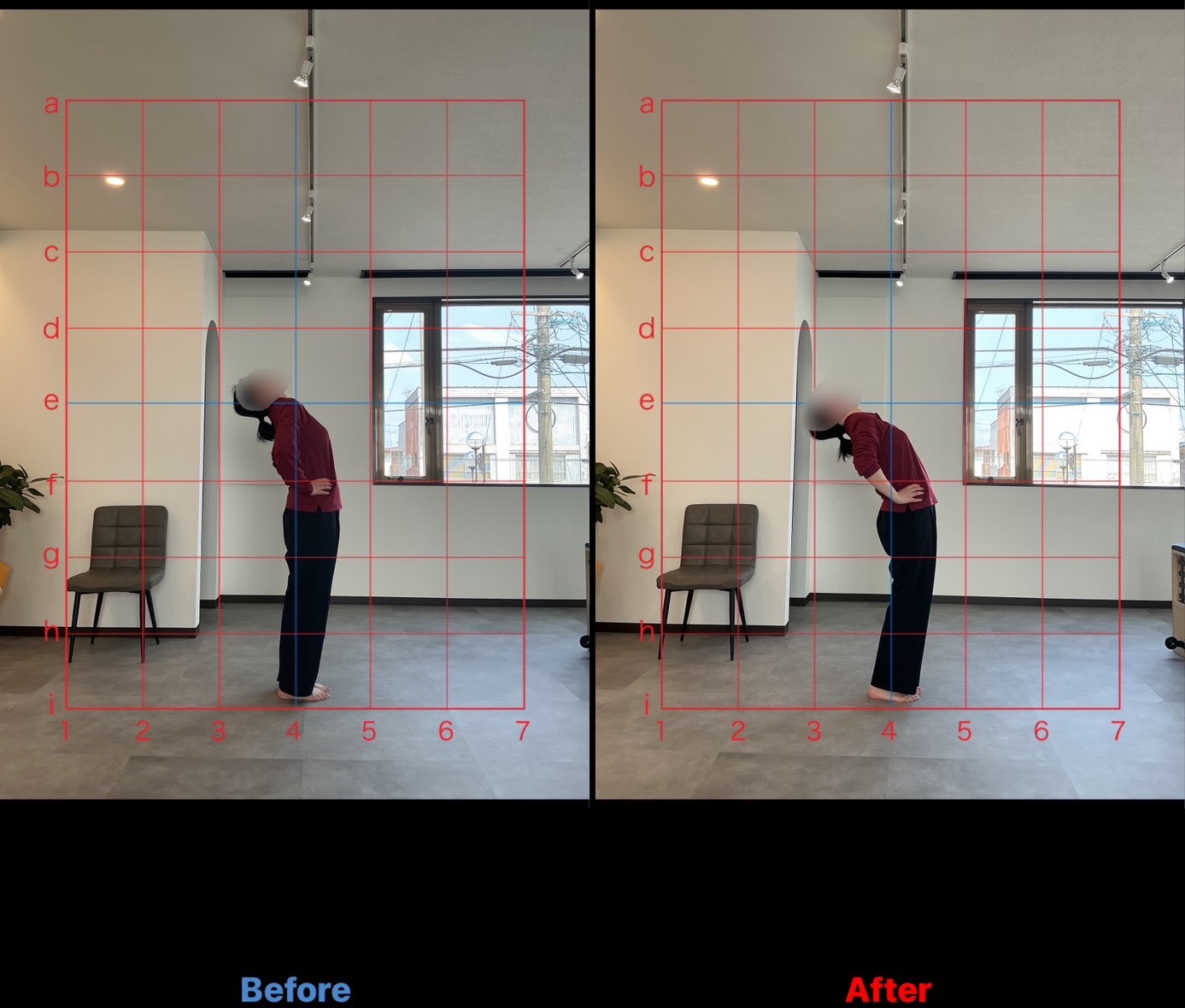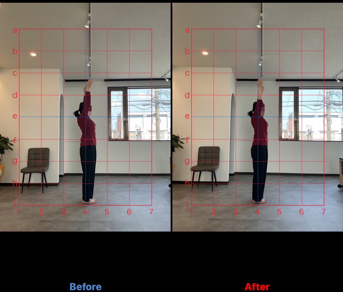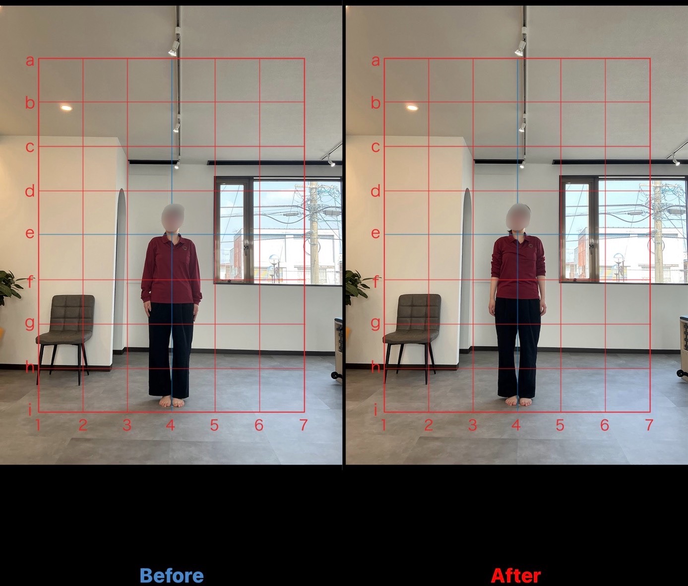 お客様のお悩みは長時間のデスクワークにより姿勢の左右差があり、肩や背中の張りに伴い動きにくさを感じていました。初回レッスン後には左右差や動きにくさが改善されました。