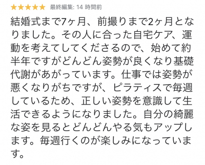 前撮りと結婚式へ向けて「姿勢を綺麗にしたい」